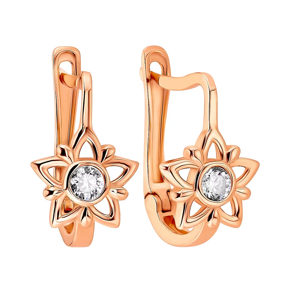 Детские сережки в форме цветка из красного золота с фианитами - 1879079