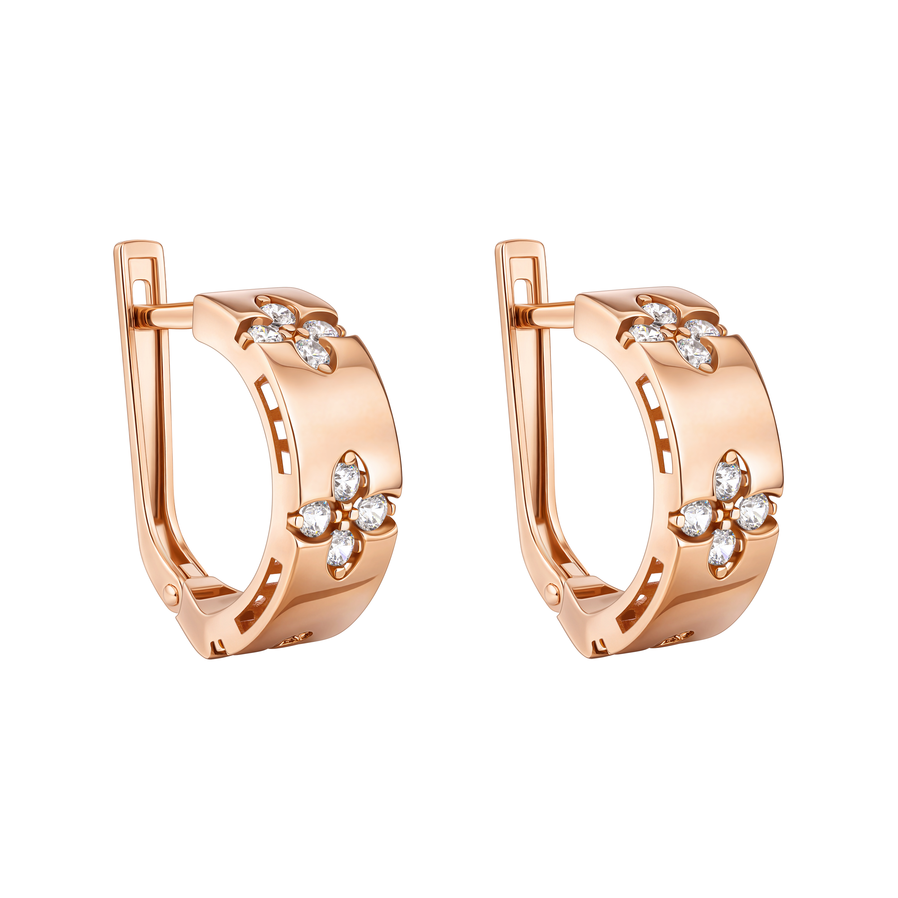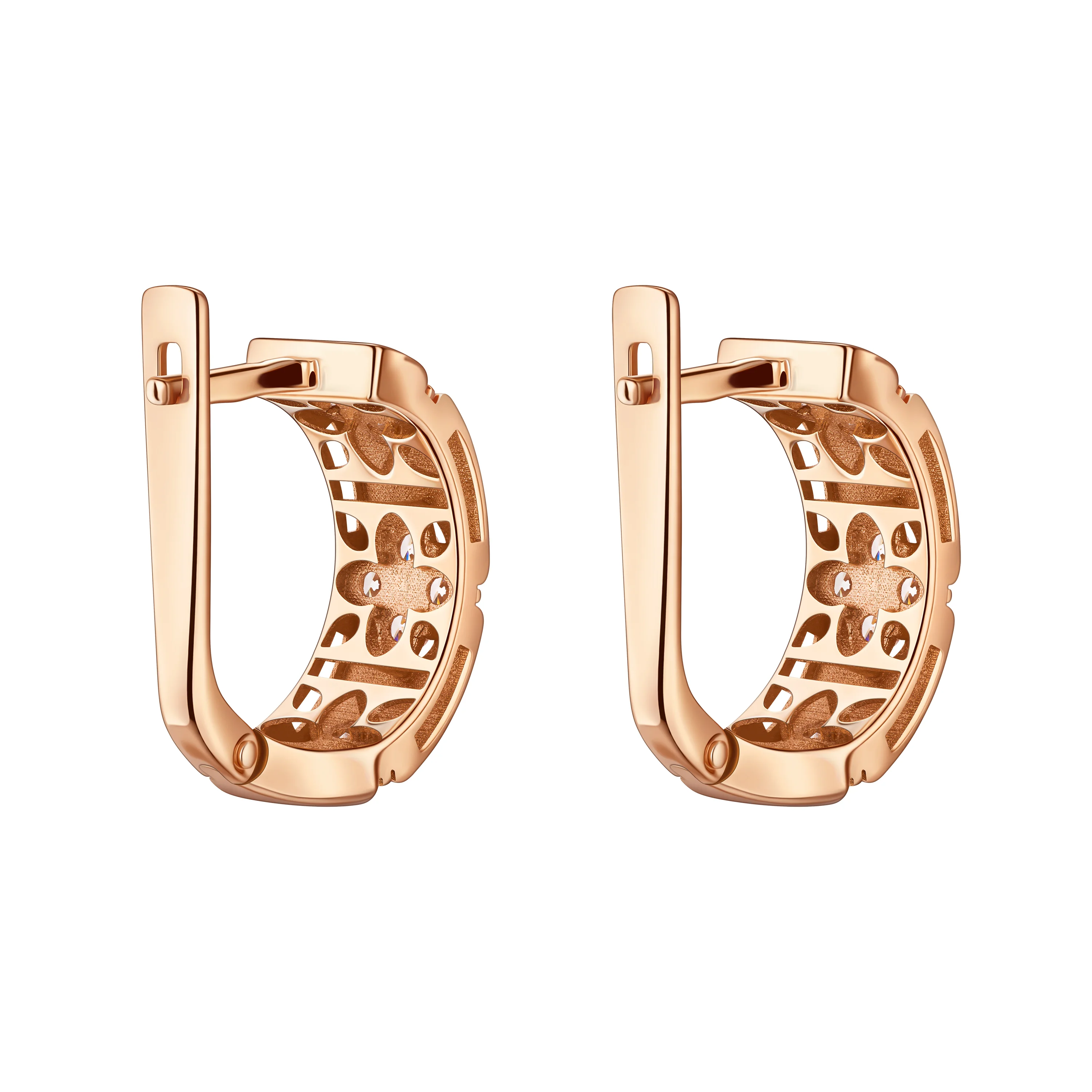 Серьги из красного золота "Цветок" с фианиатами - 2134279