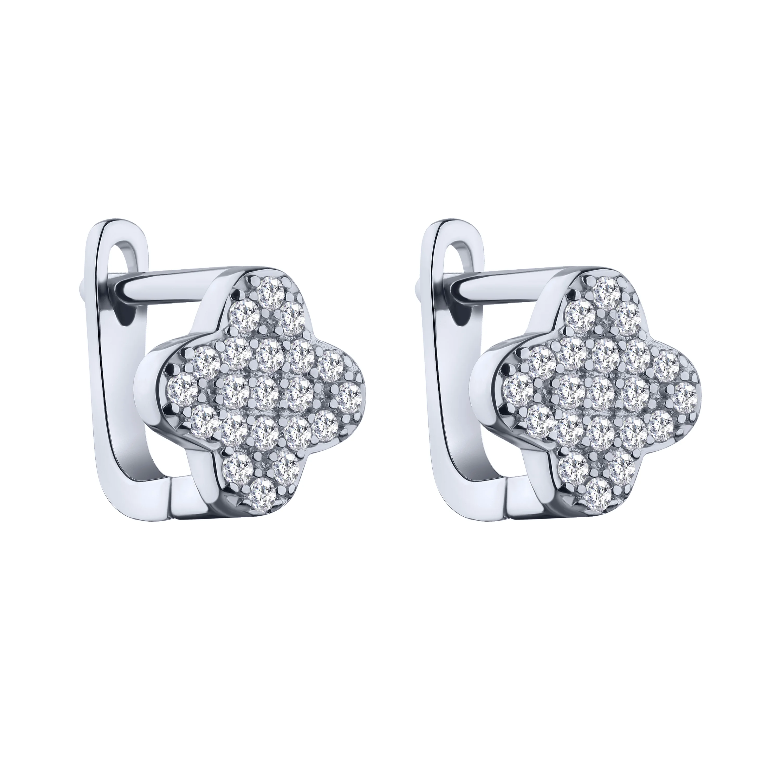 Серьги из серебра "Клевер" с фианитами - 2205863