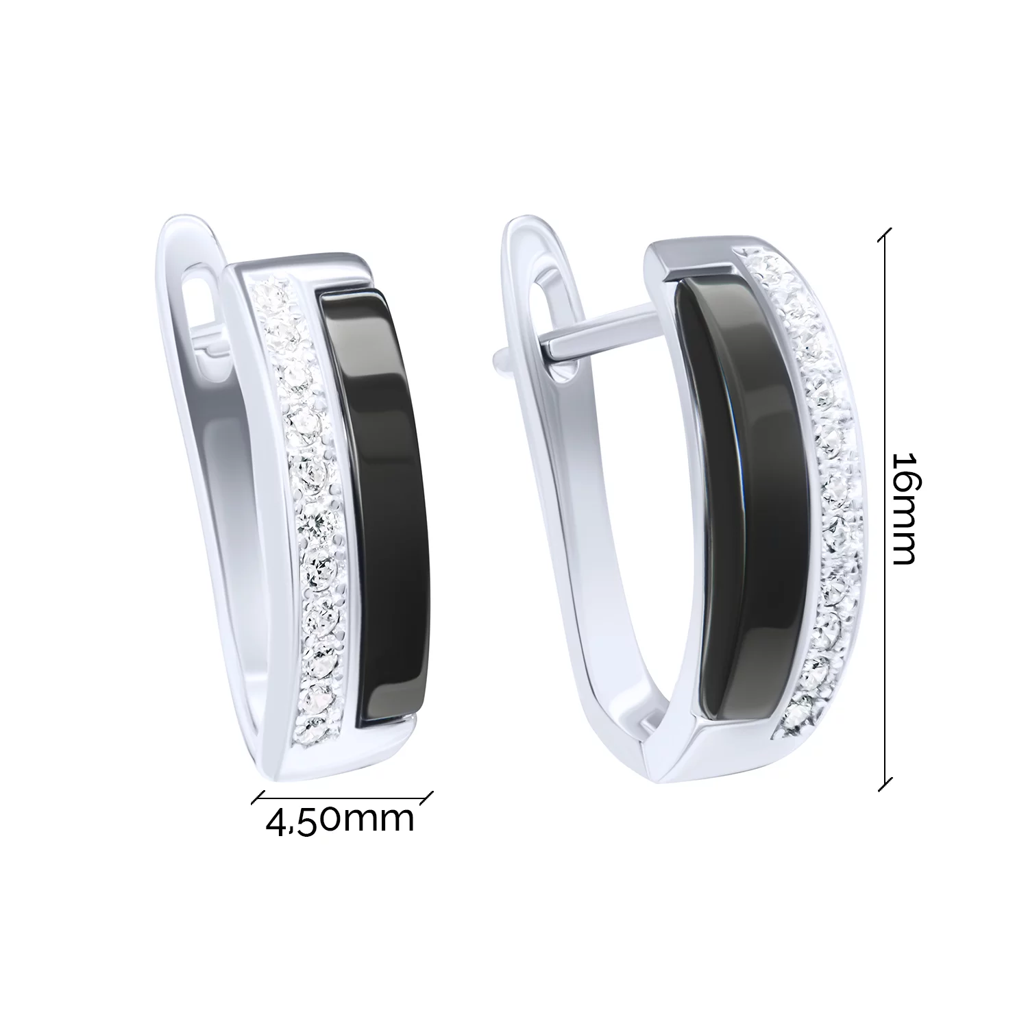 Серебряные сережки-гвоздики "Клевер" с желтым родированием с малахитом и фианитами - 1880151