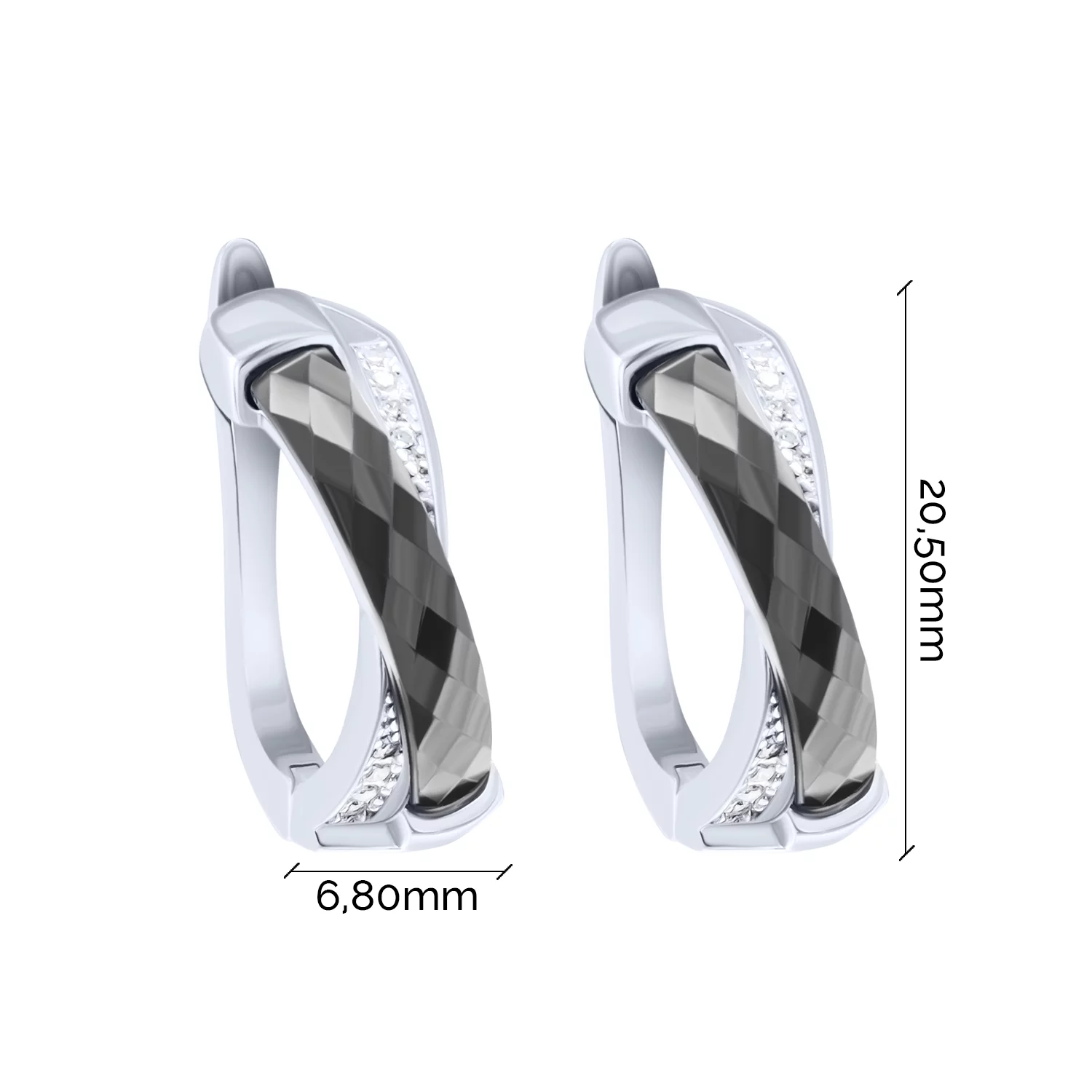 Серьги из серебра с фианитами и керамикой - 1813011