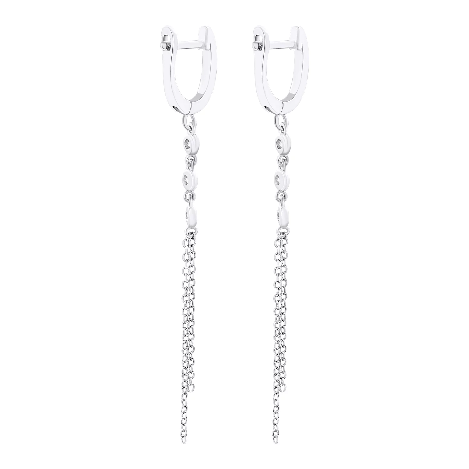 Серьги-гвоздики трансформери серебряные с подвесками "Геометрия" и эмалью - 1548699