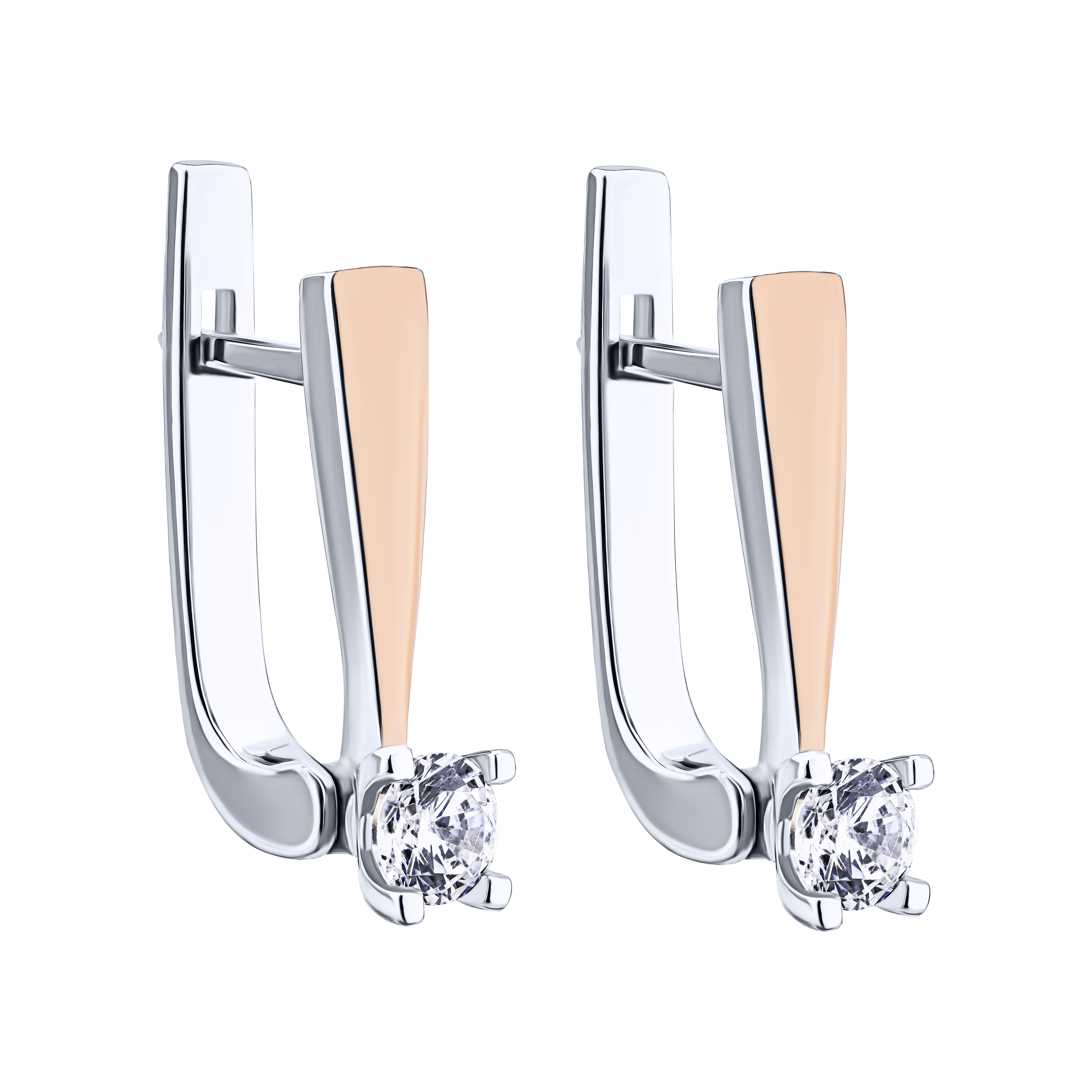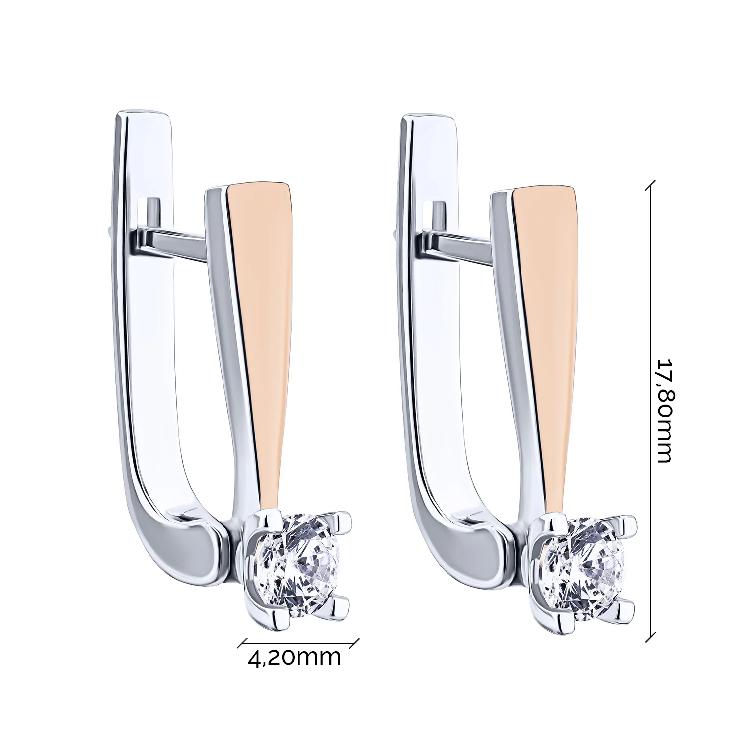 Серьги из серебра с накладкой из красного золота и фианитом - 2162837
