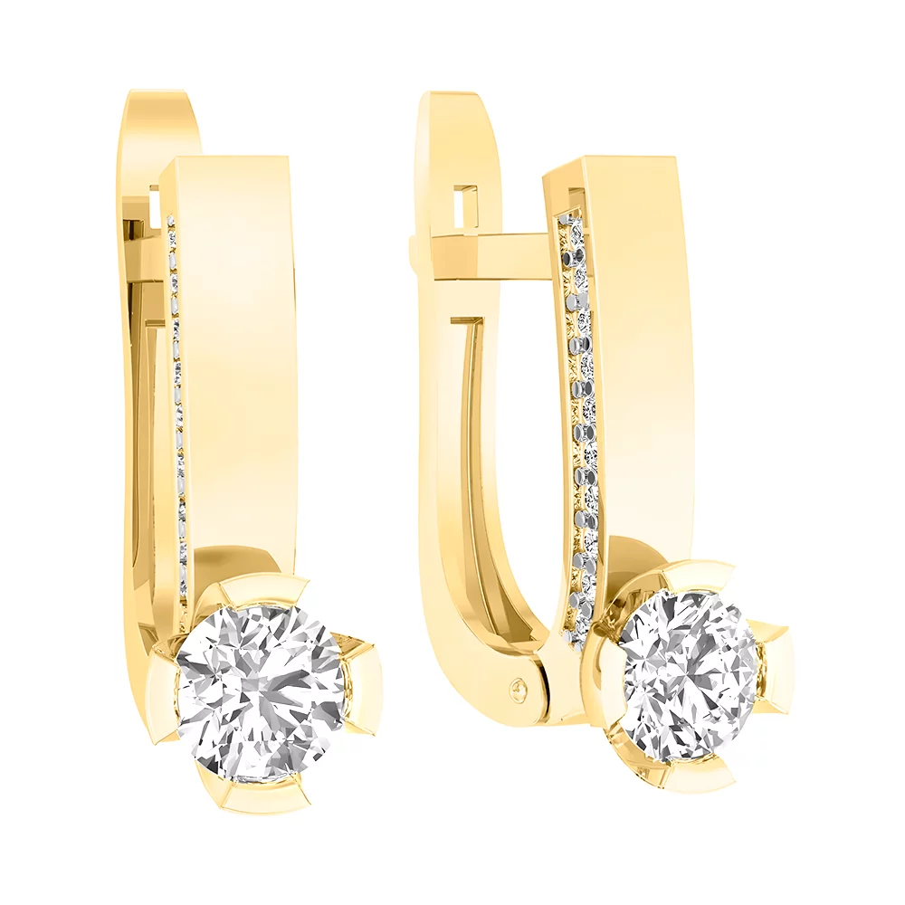 Серьги из желтого золота с фианитами - 1502207