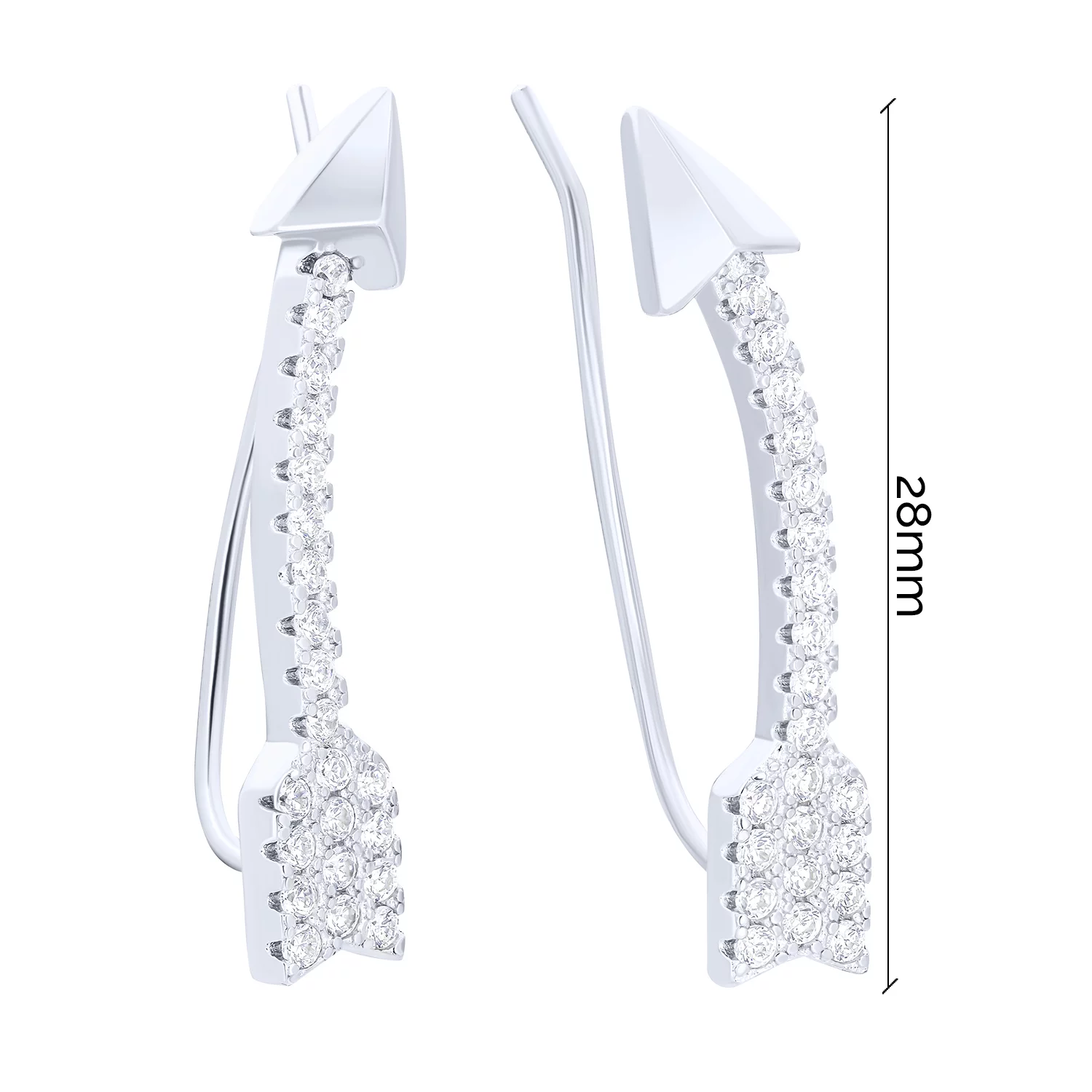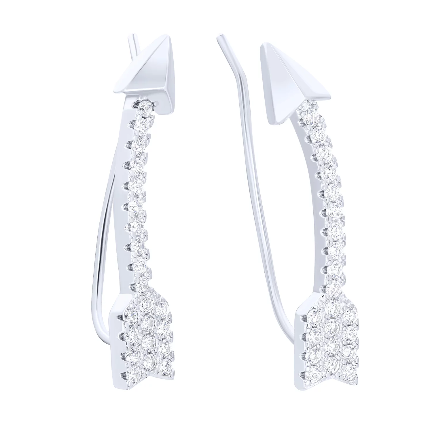 Серьги-каффы из серебра "Стрела" с фианитами - 1542908