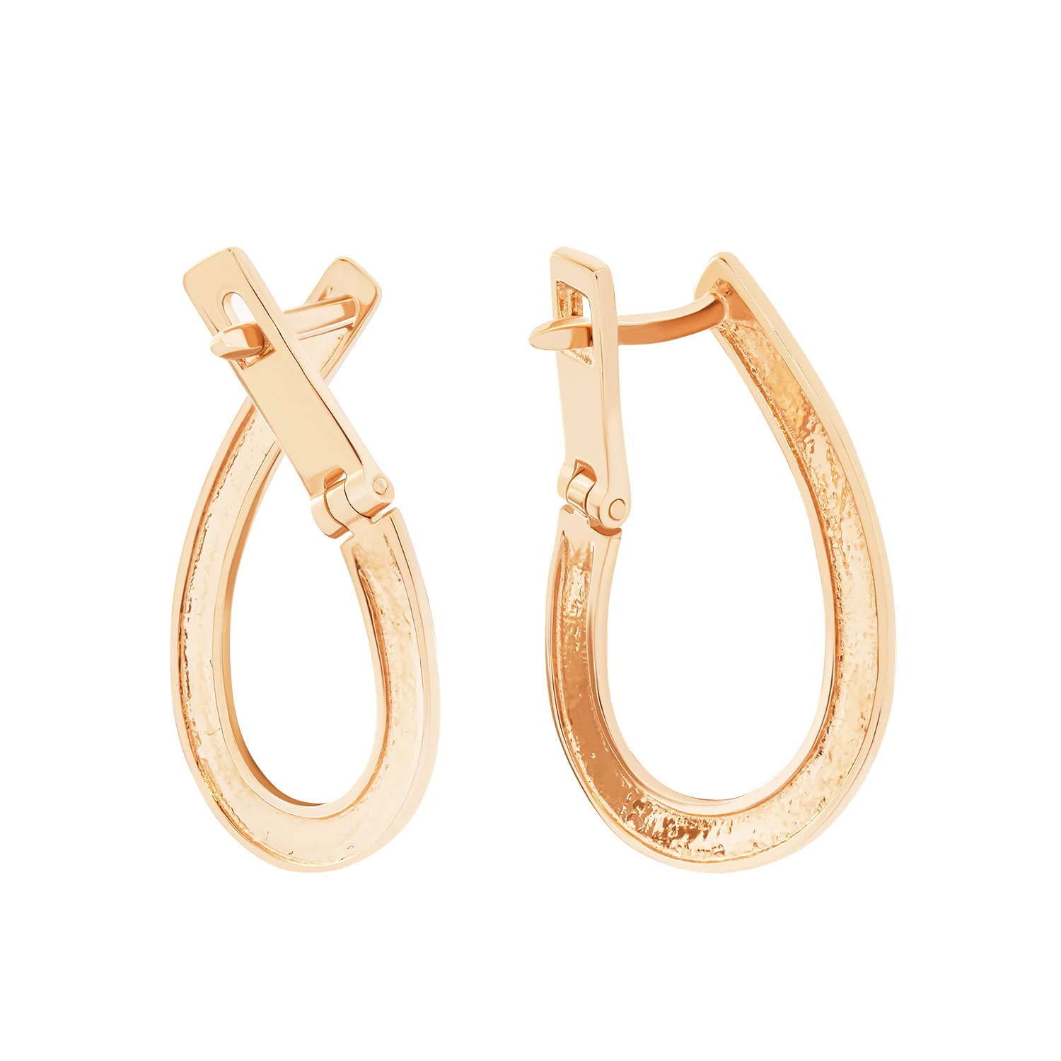 Классические сережки-кольца из красного золота с алмазной гранью - 1872987