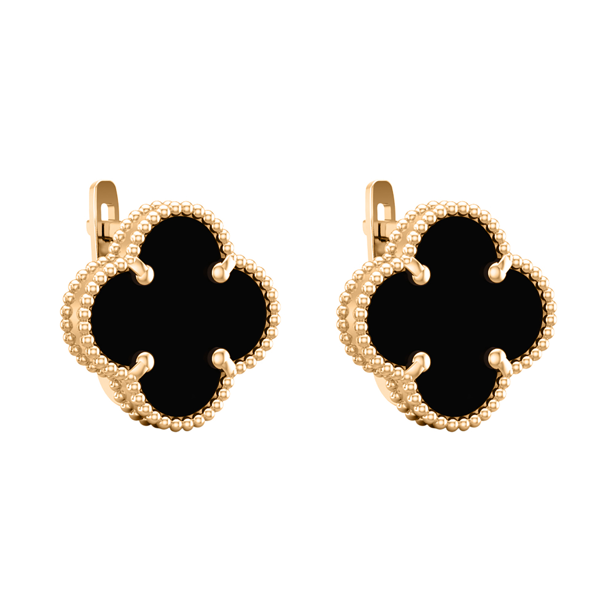 Серьги "Клевер" из красного золота с ониксом - 2125864