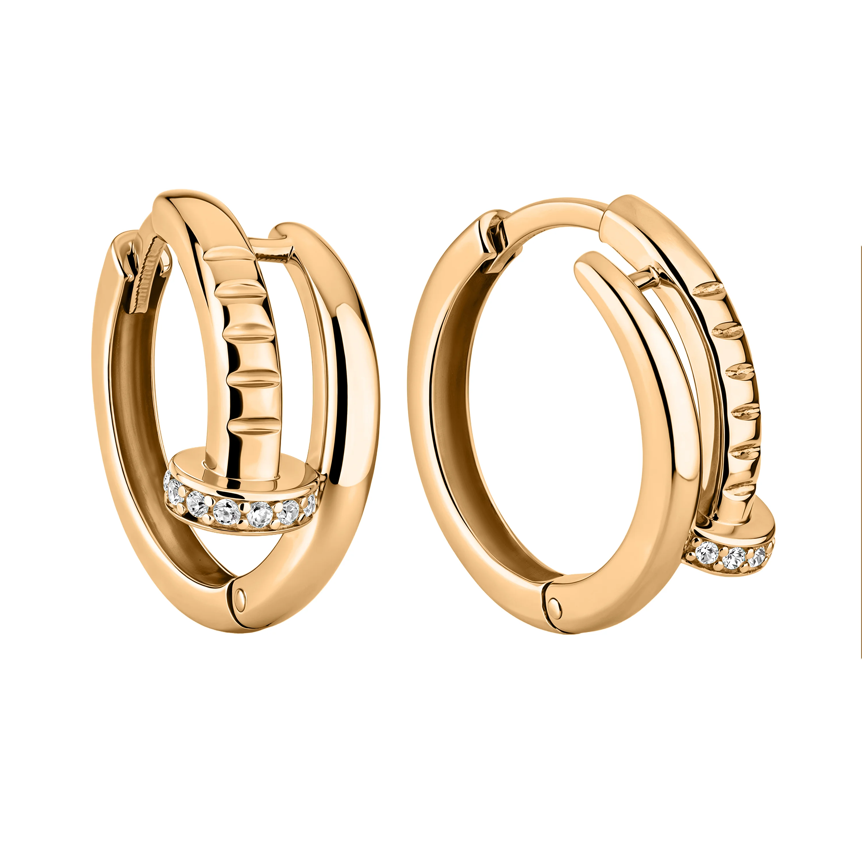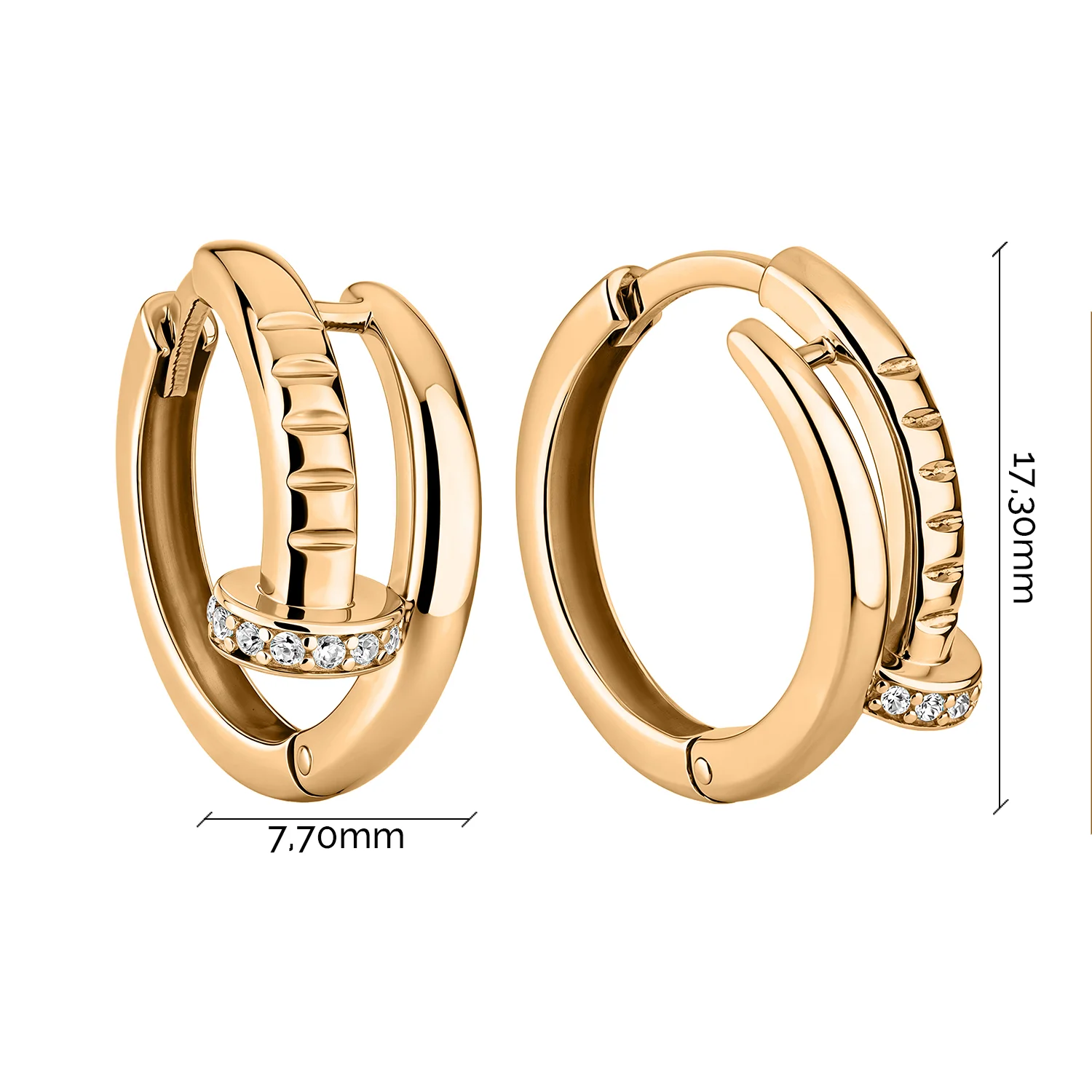 Серьги-кольца "Гвоздь" с фианитами в красном золоте - 2182470