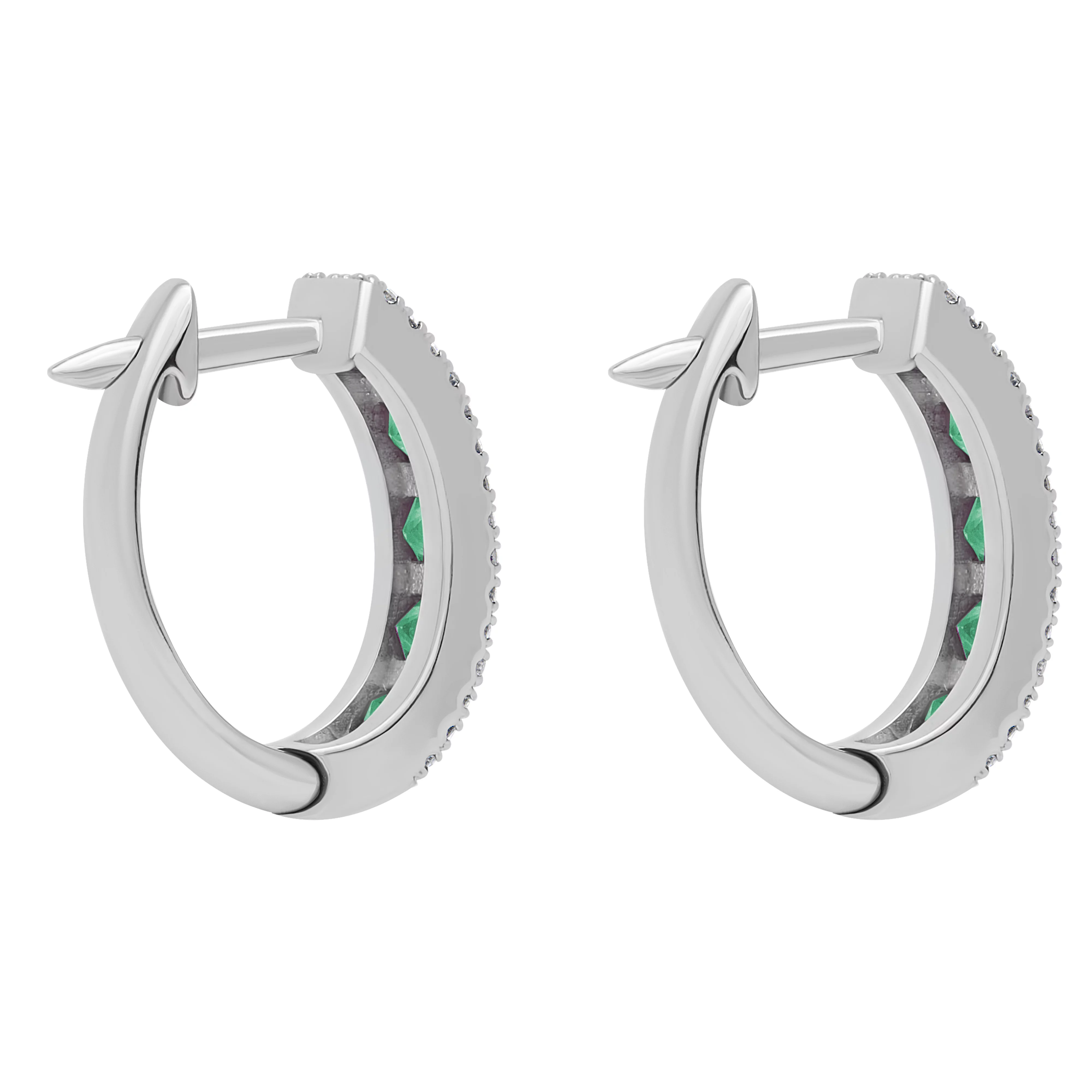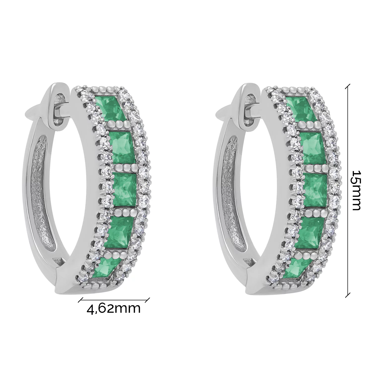 Серьги-кольца из белого золота с изумрудами и бриллиантами - 1771972