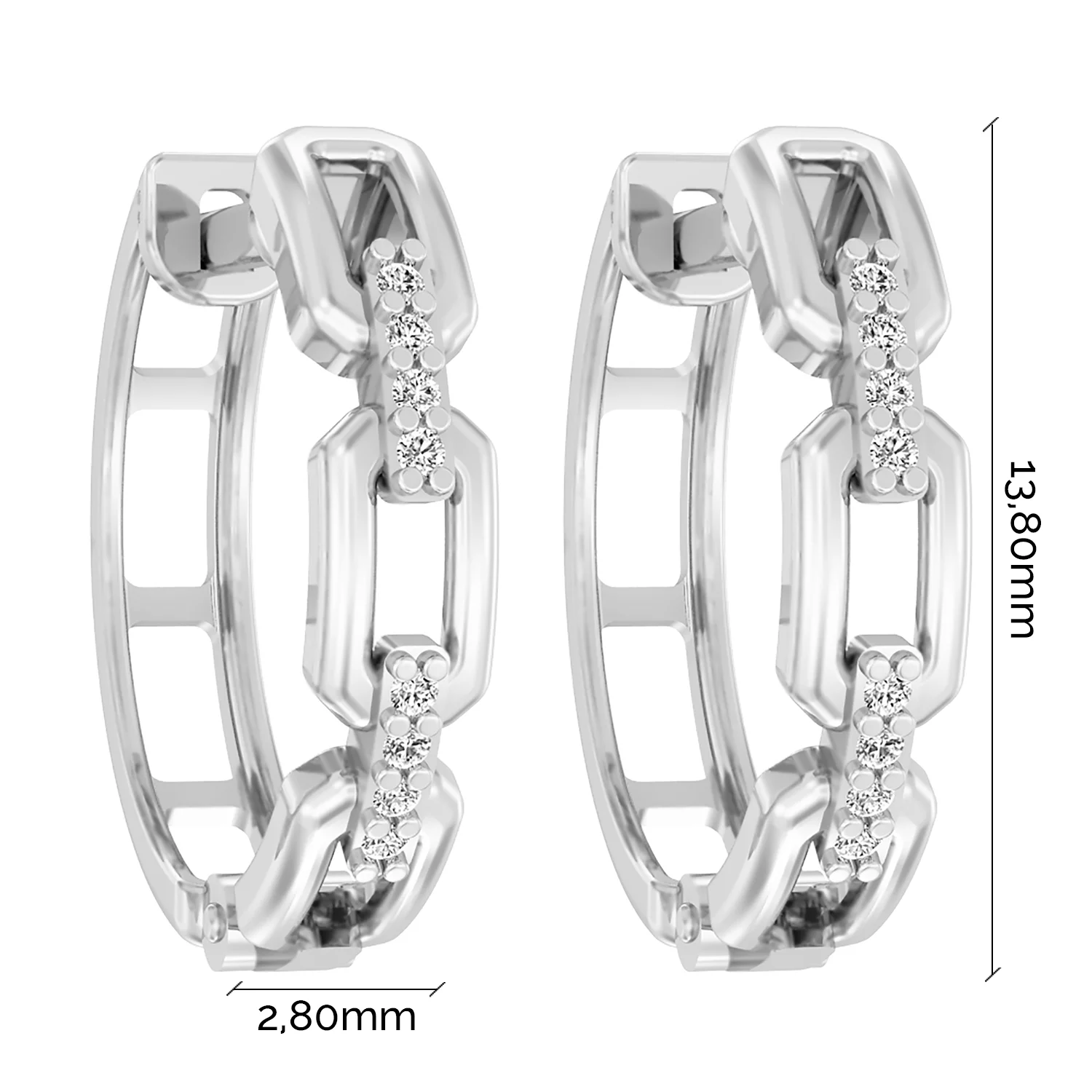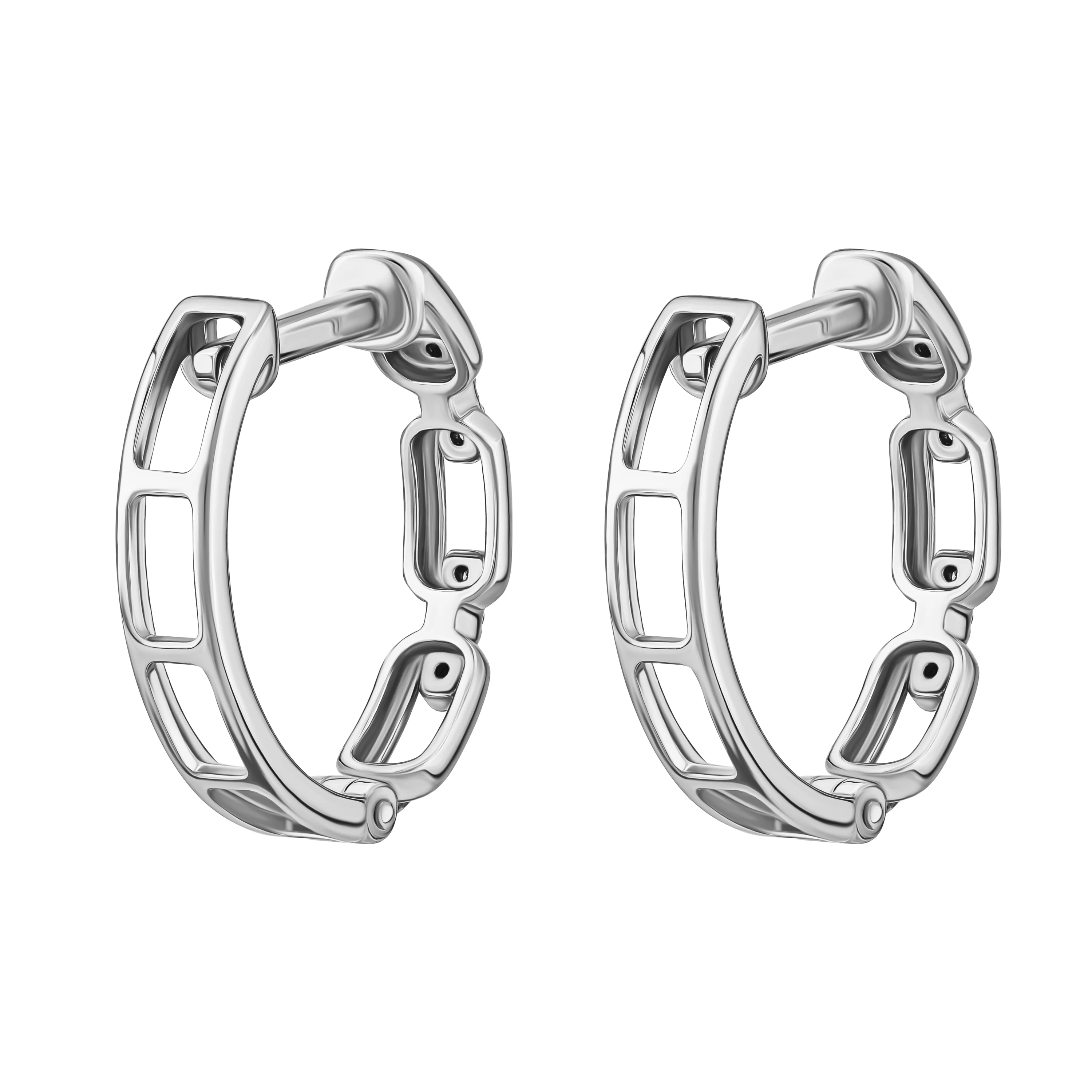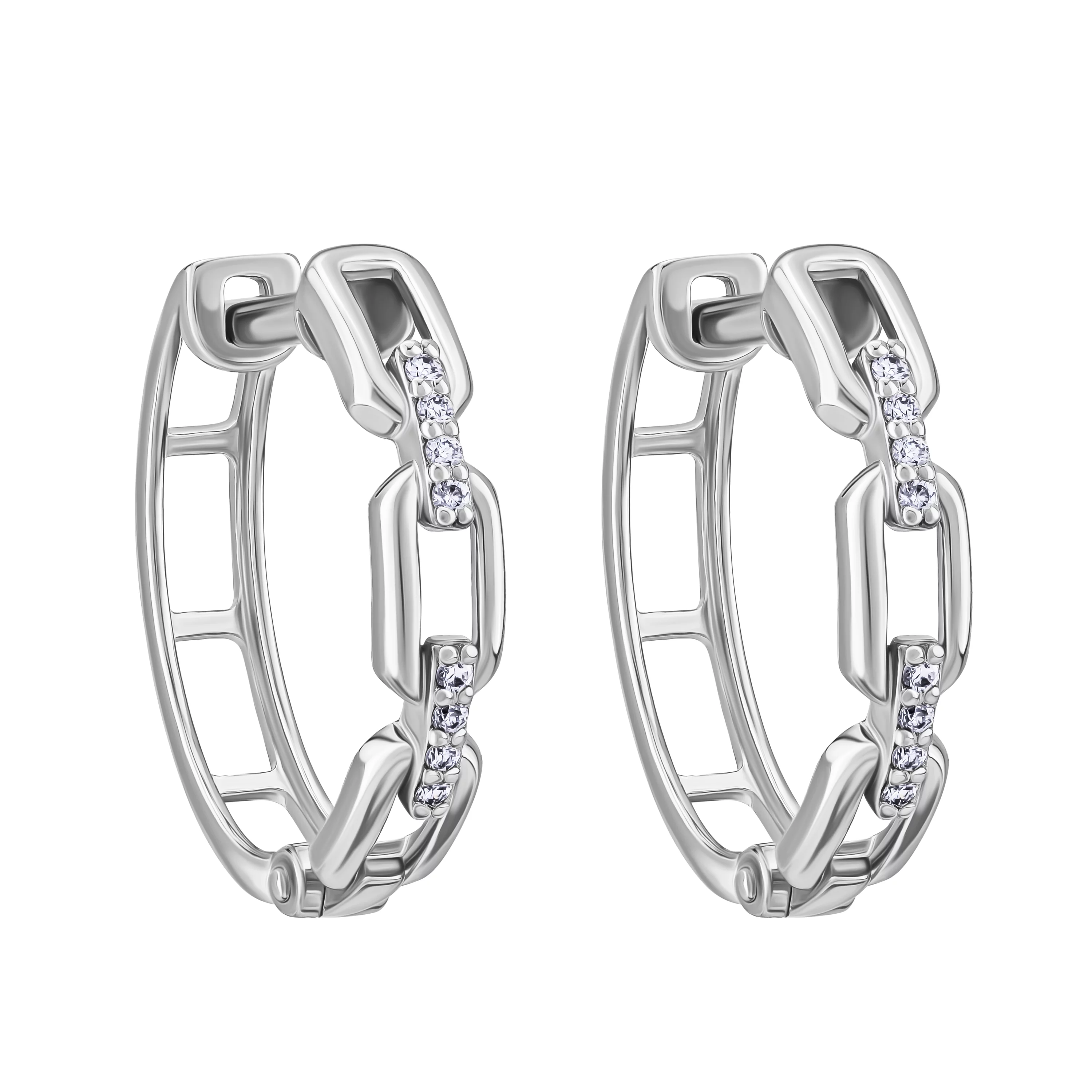 Серьги-кольца из белого золота с подвесными цепочками якорного плетения - 1858829