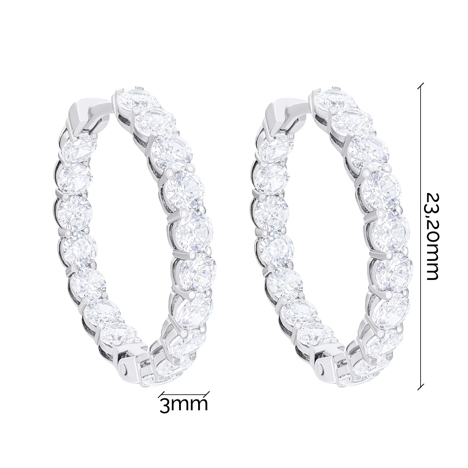Серьги-кольца из серебра с дорожкой фианитов - 1545951