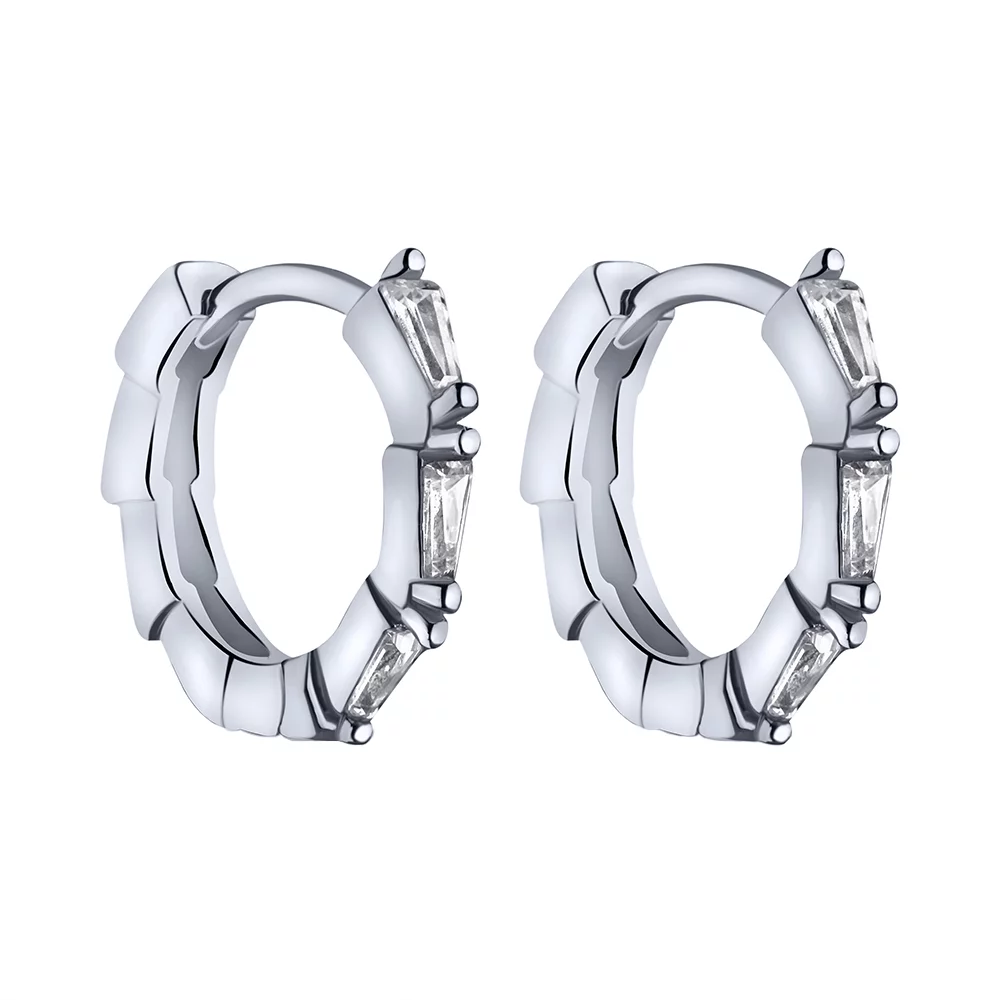 Серьги-кольца с дорожкой фианитов в серебре - 1809810