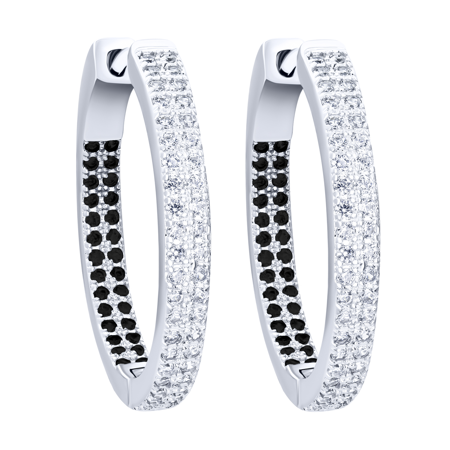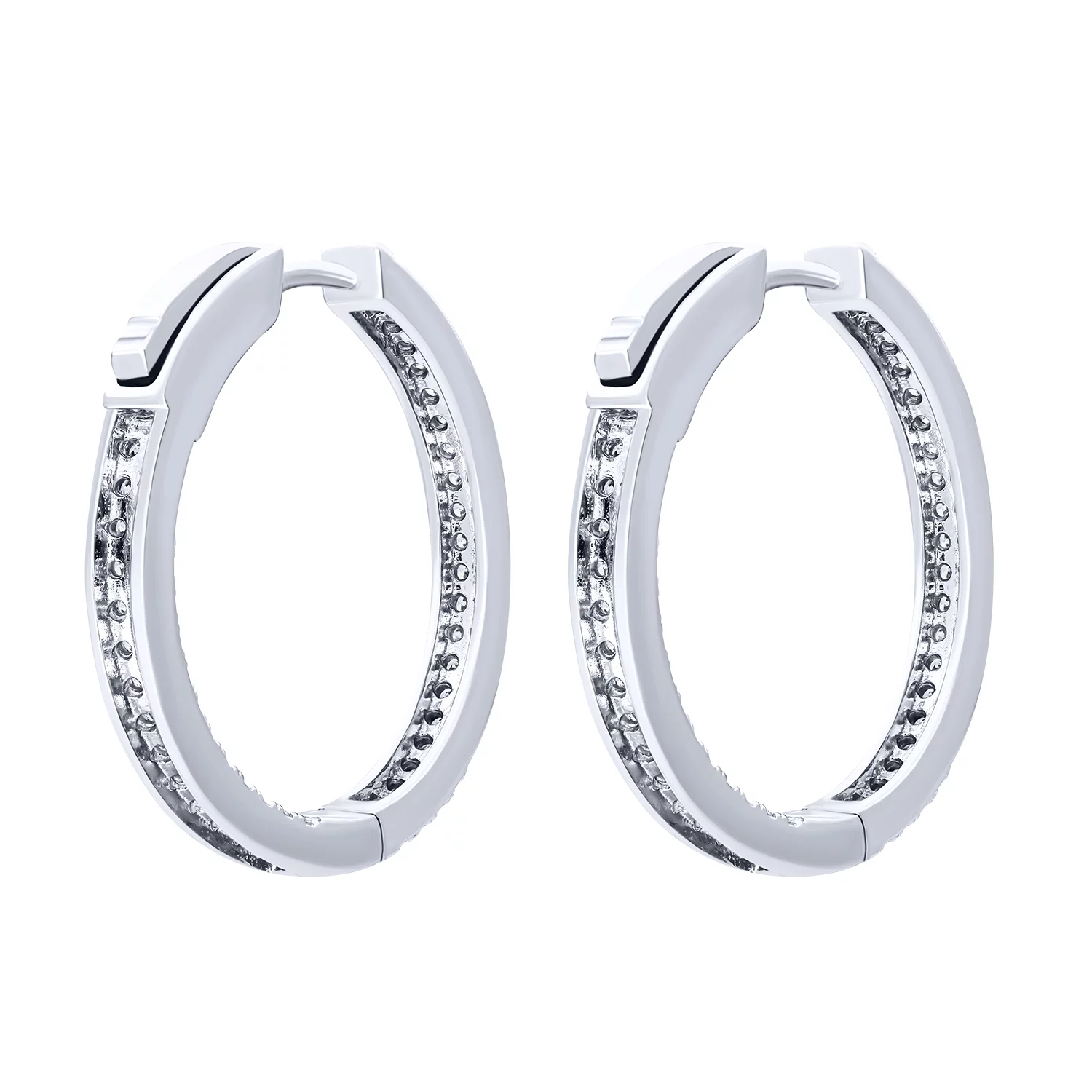 Серьги-кольца серебряные с дорожкой фианитов - 1683247