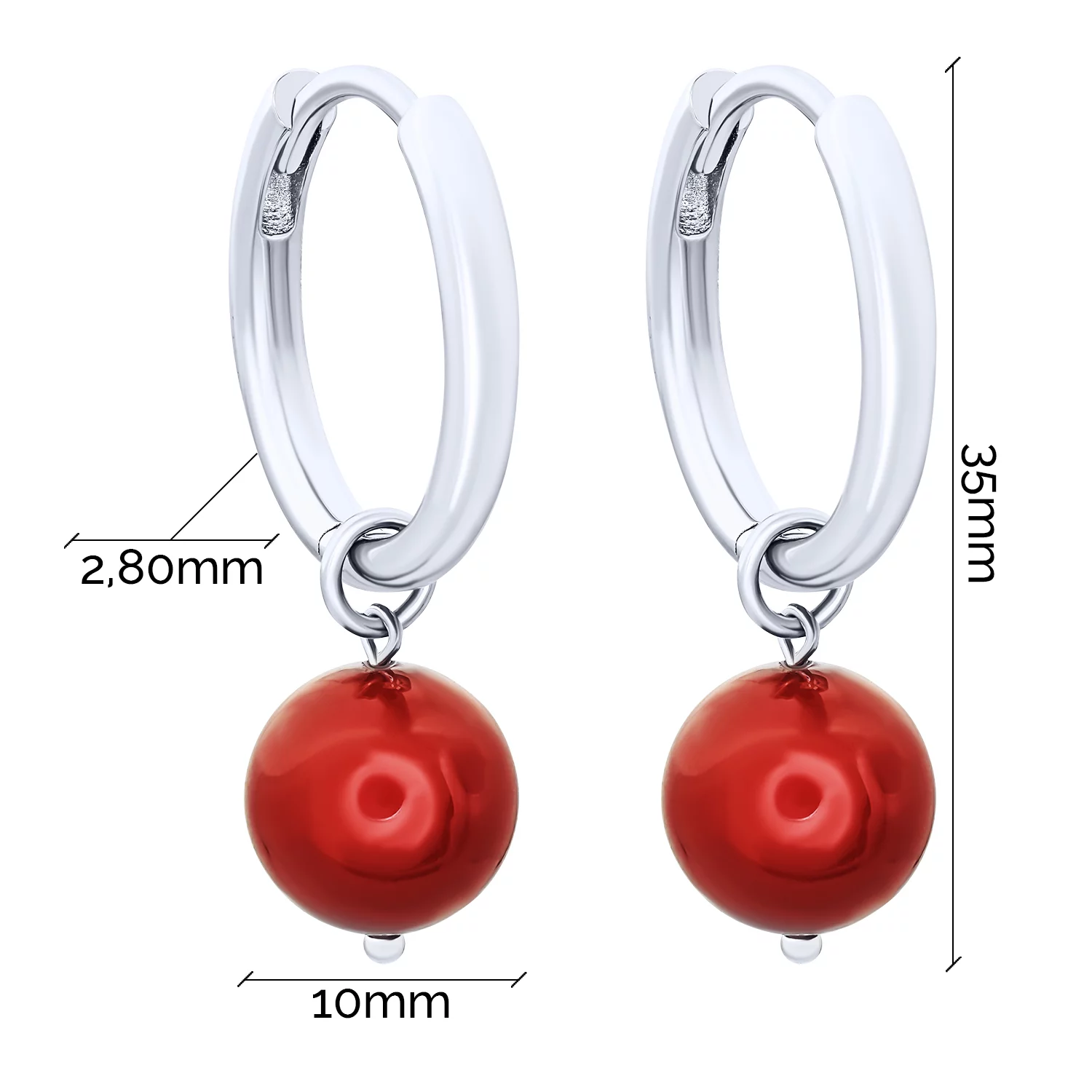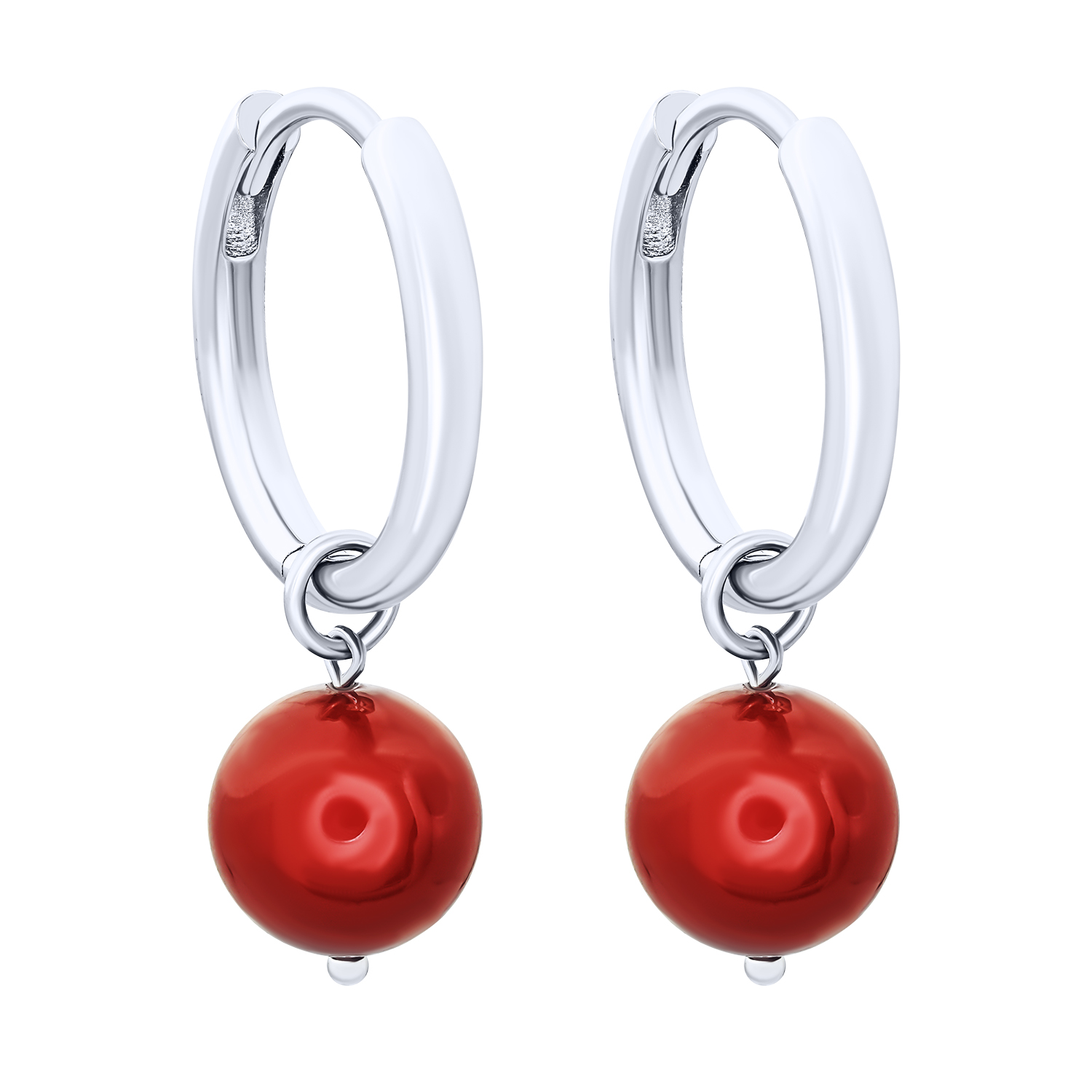 Серьги-кольца серебряные с подвесным кораллом - 1643987
