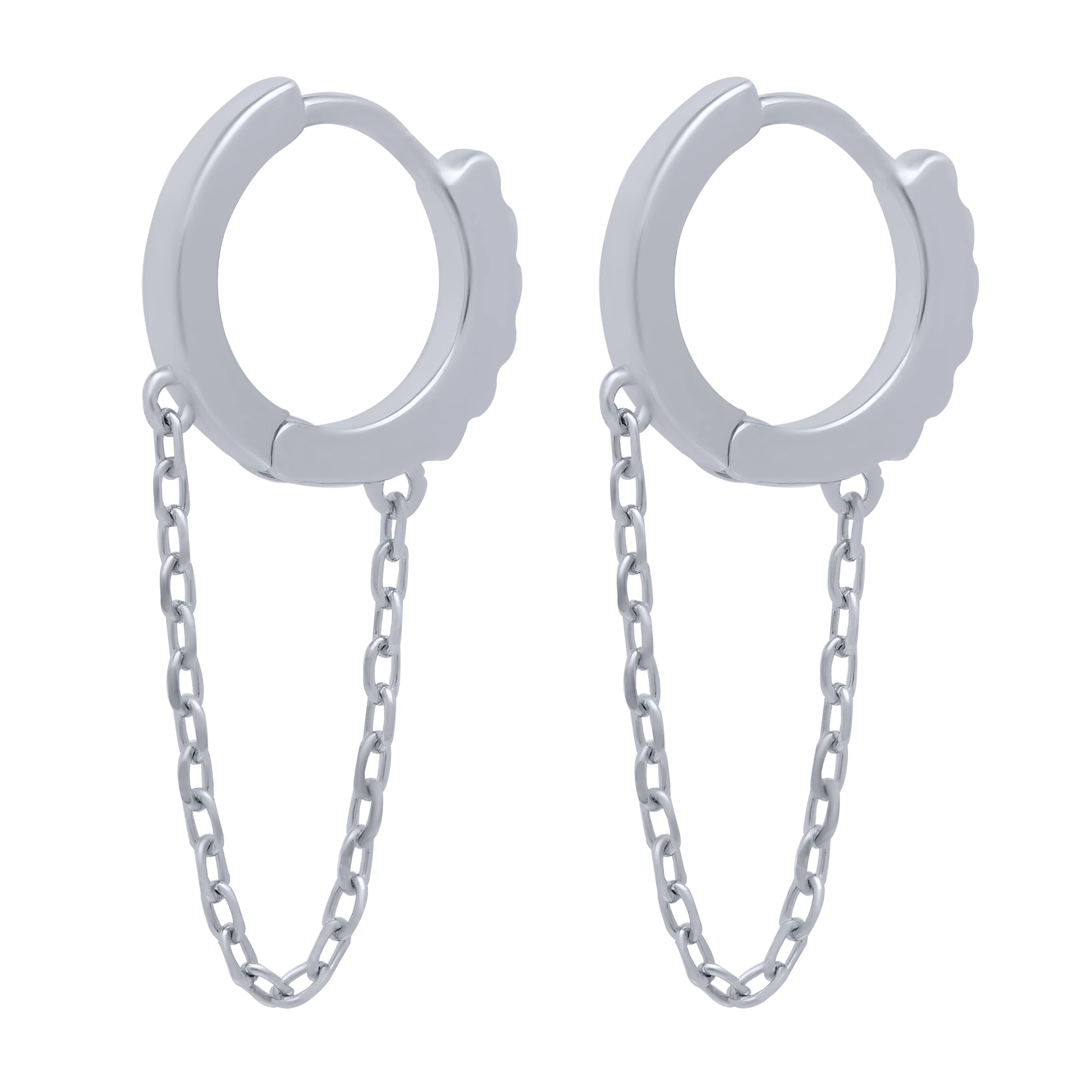 Серьги-кольца серебряные с подвесными цепочками - 1683301