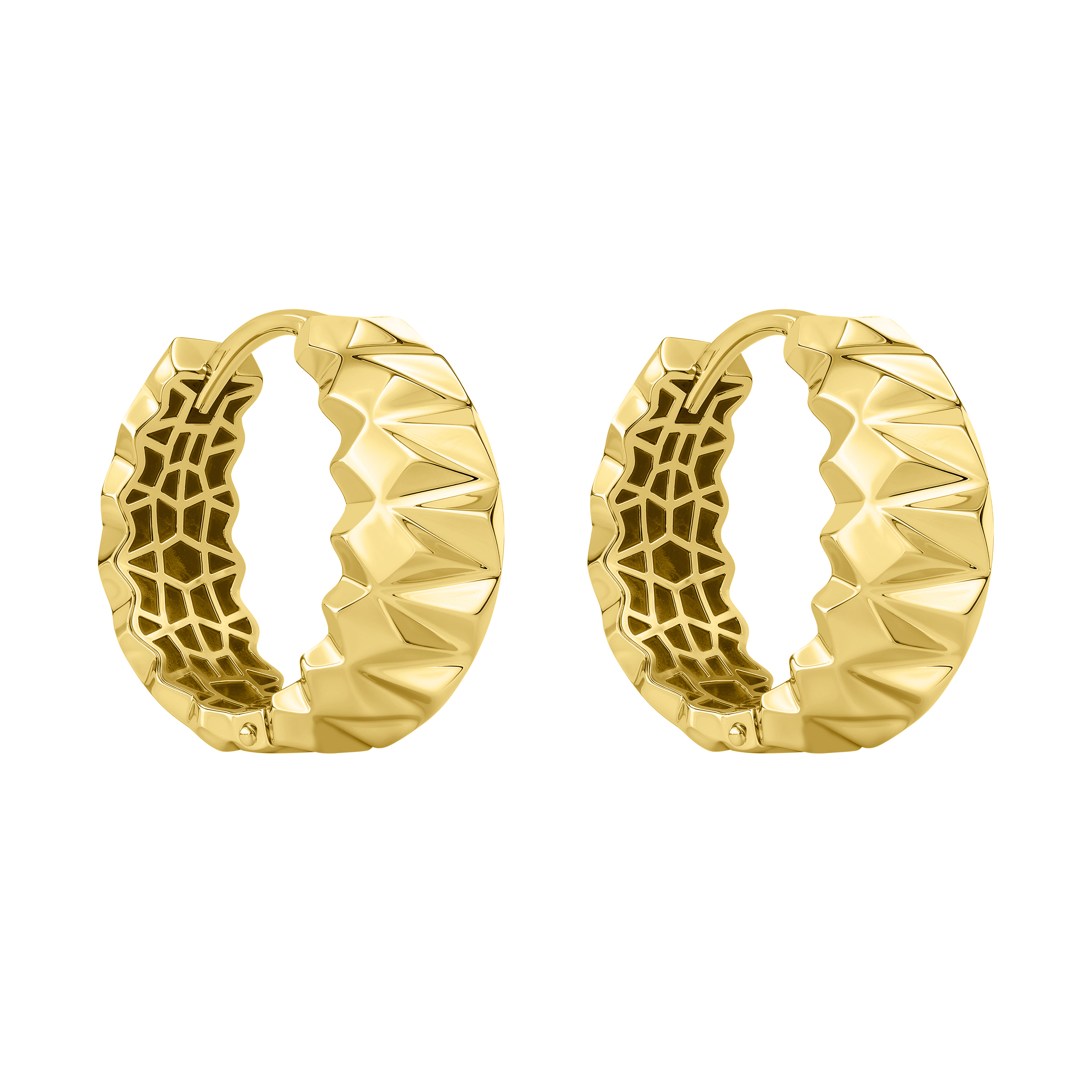 Серьги-кольца в желтом золоте с гранями - 2139700