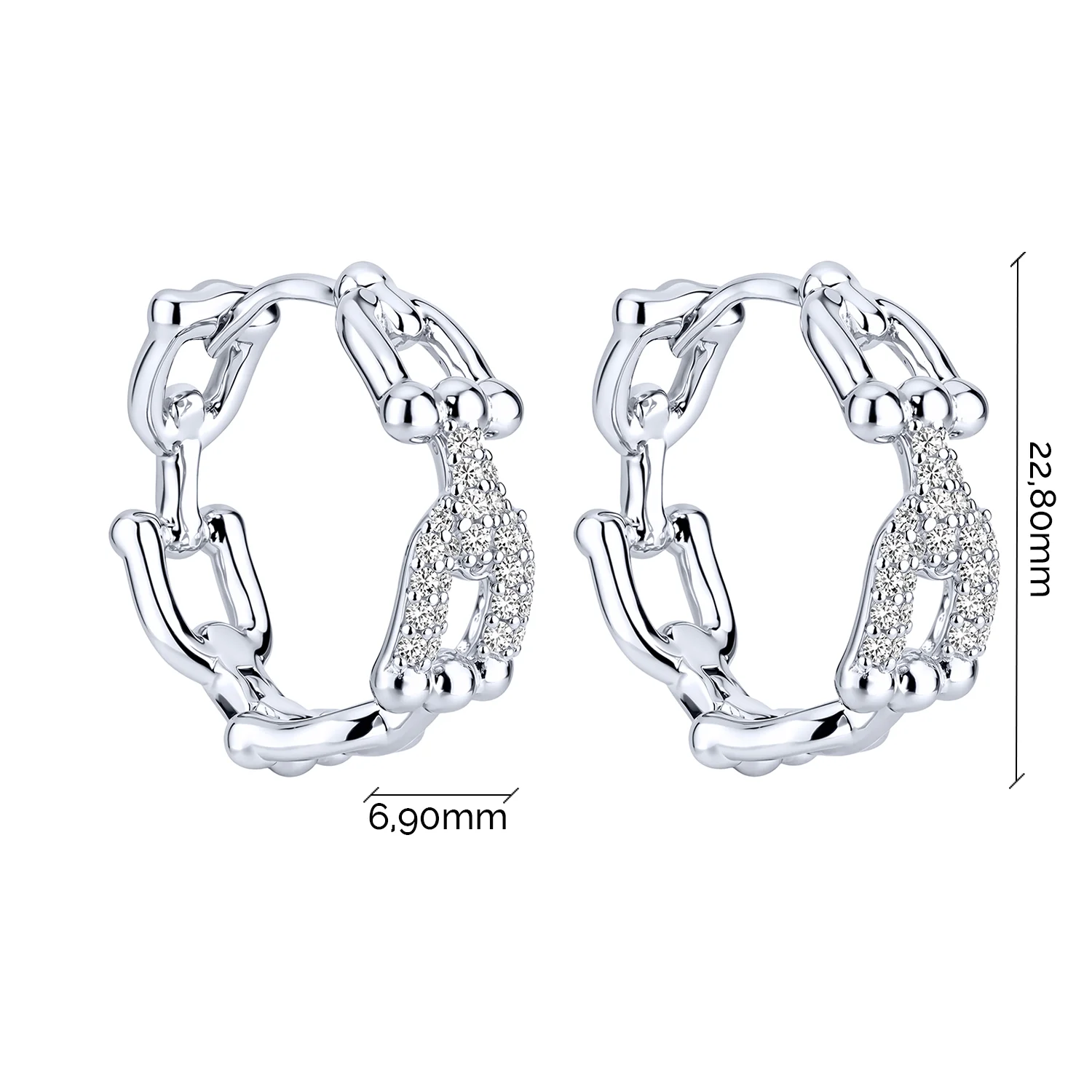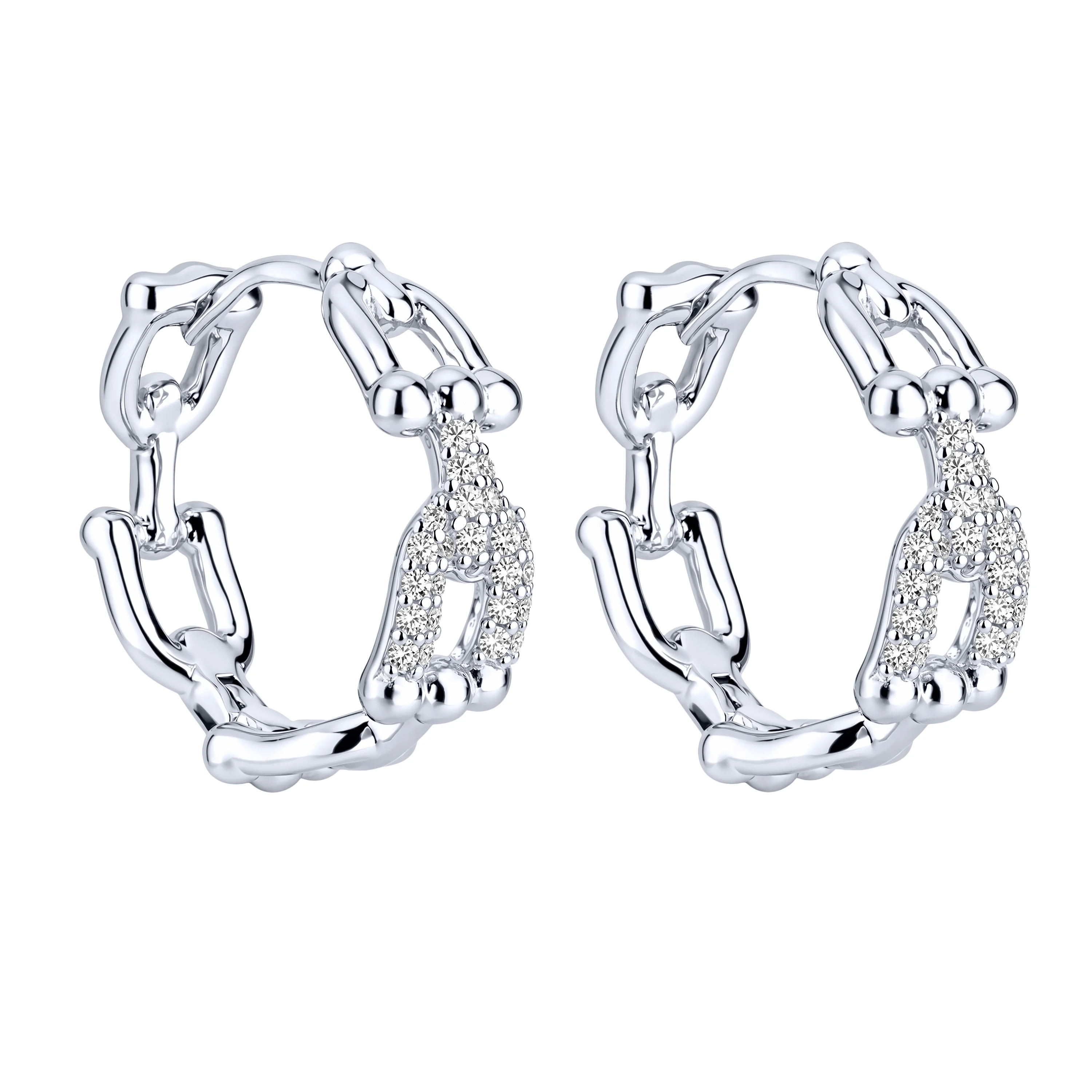Серьги-кольца "Звенья" из серебра с фианитами - 2192854