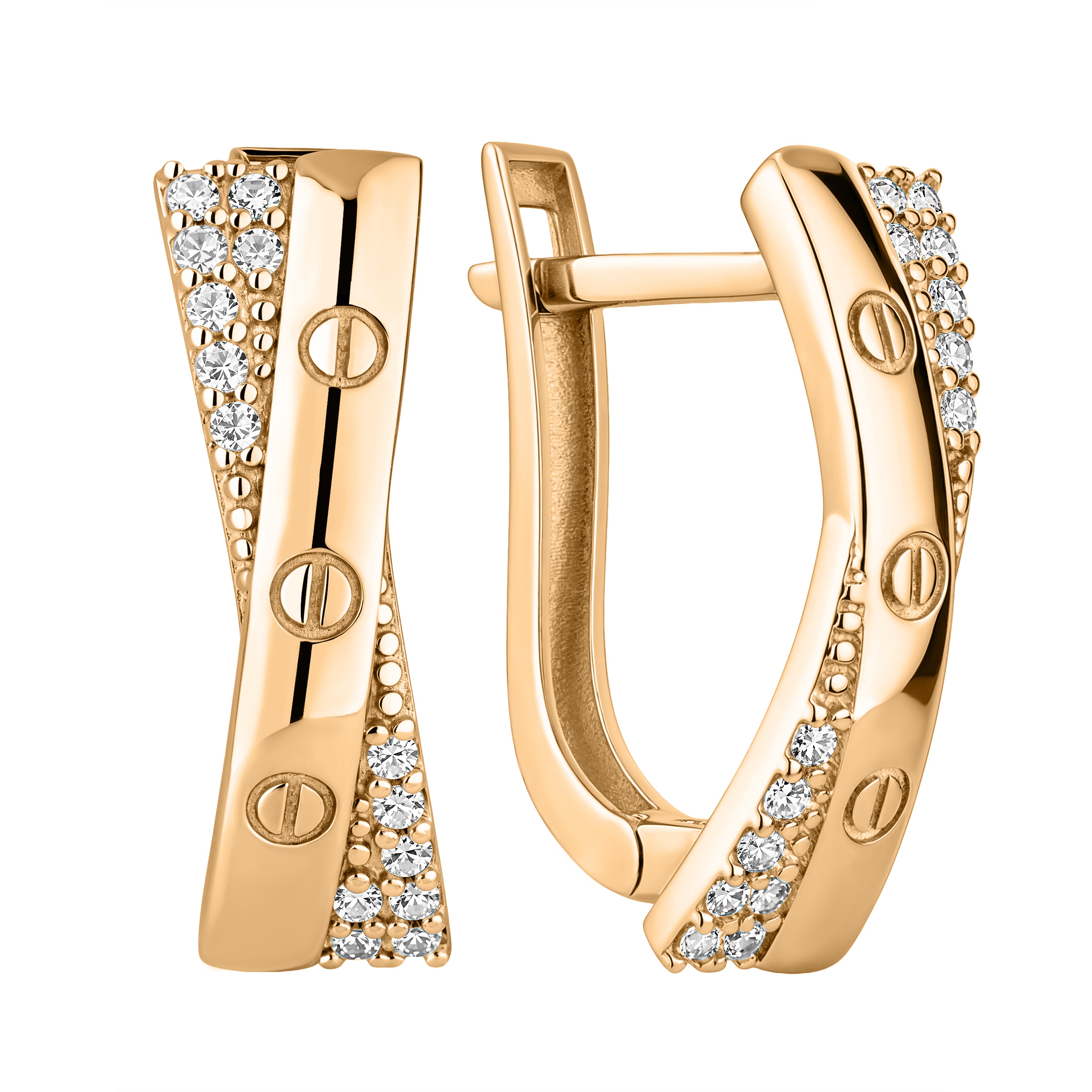 Серьги "Love" из красного золота с фианитами - 2183088