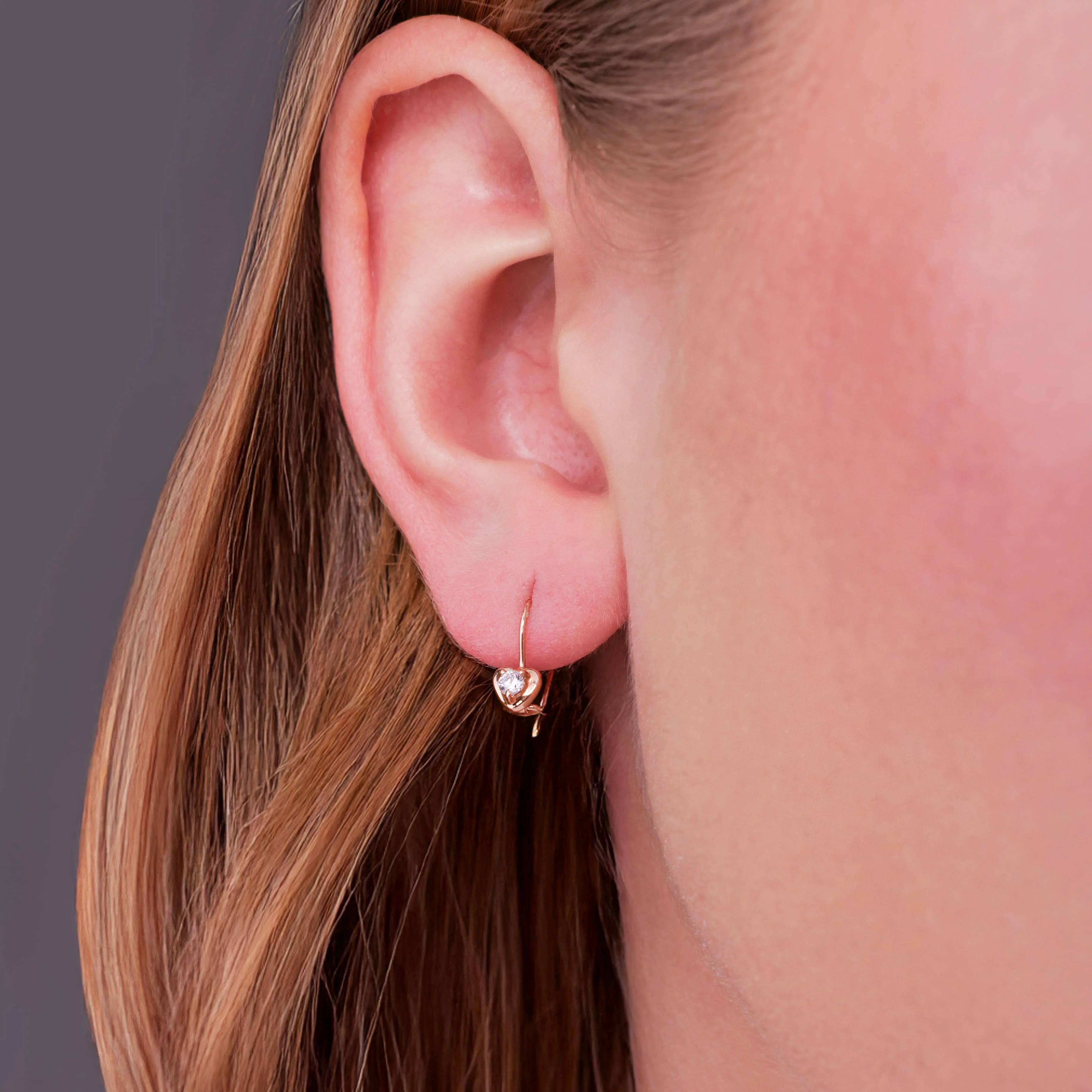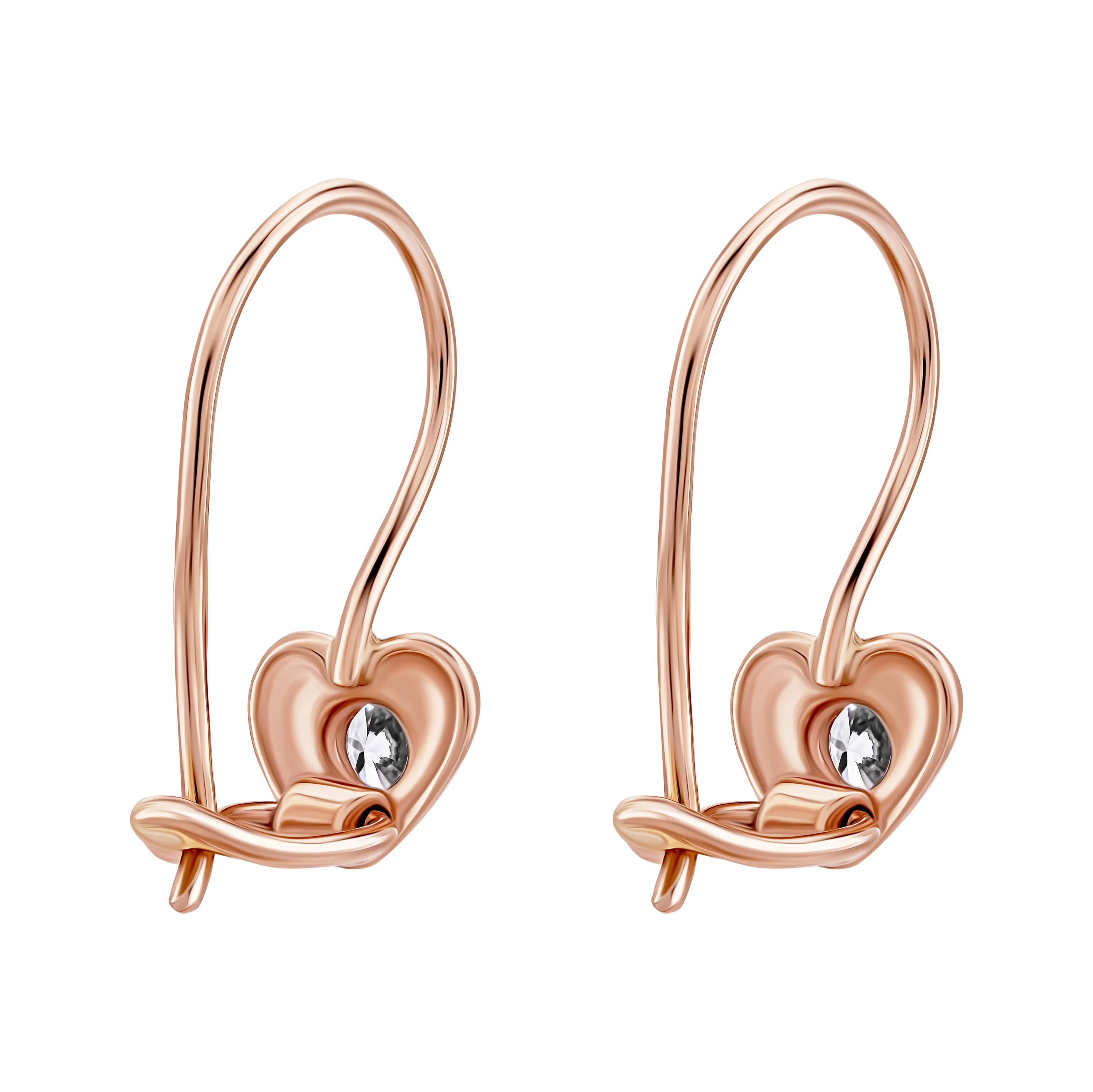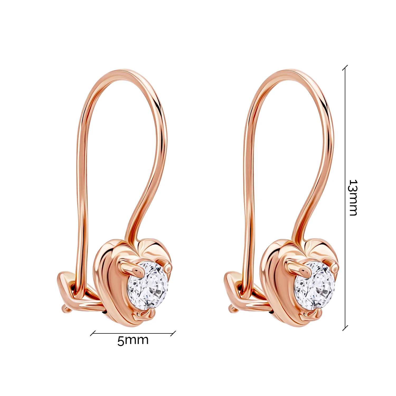 Серьги-петли "Сердце" с фианитом в красном золоте - 1992547