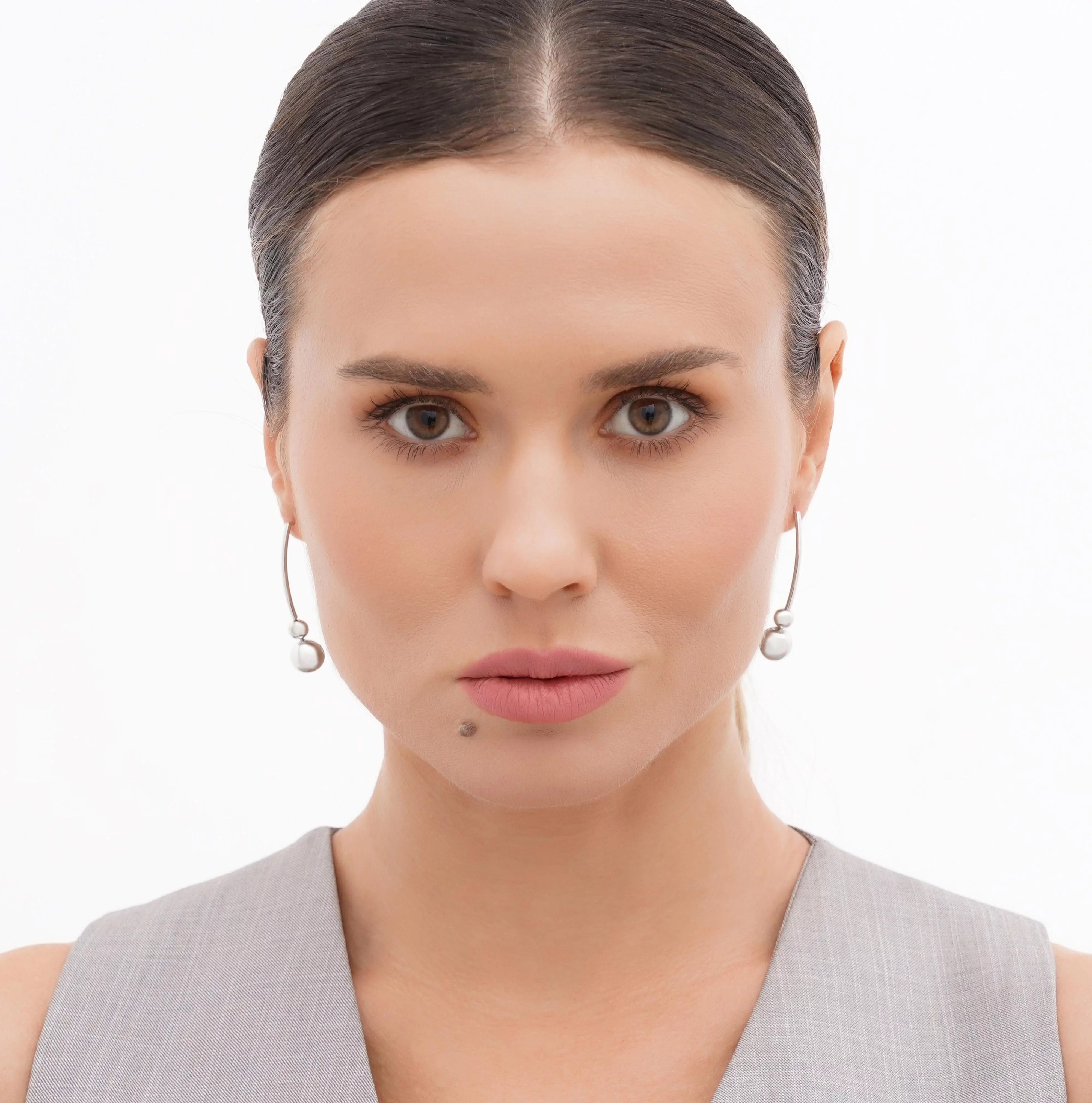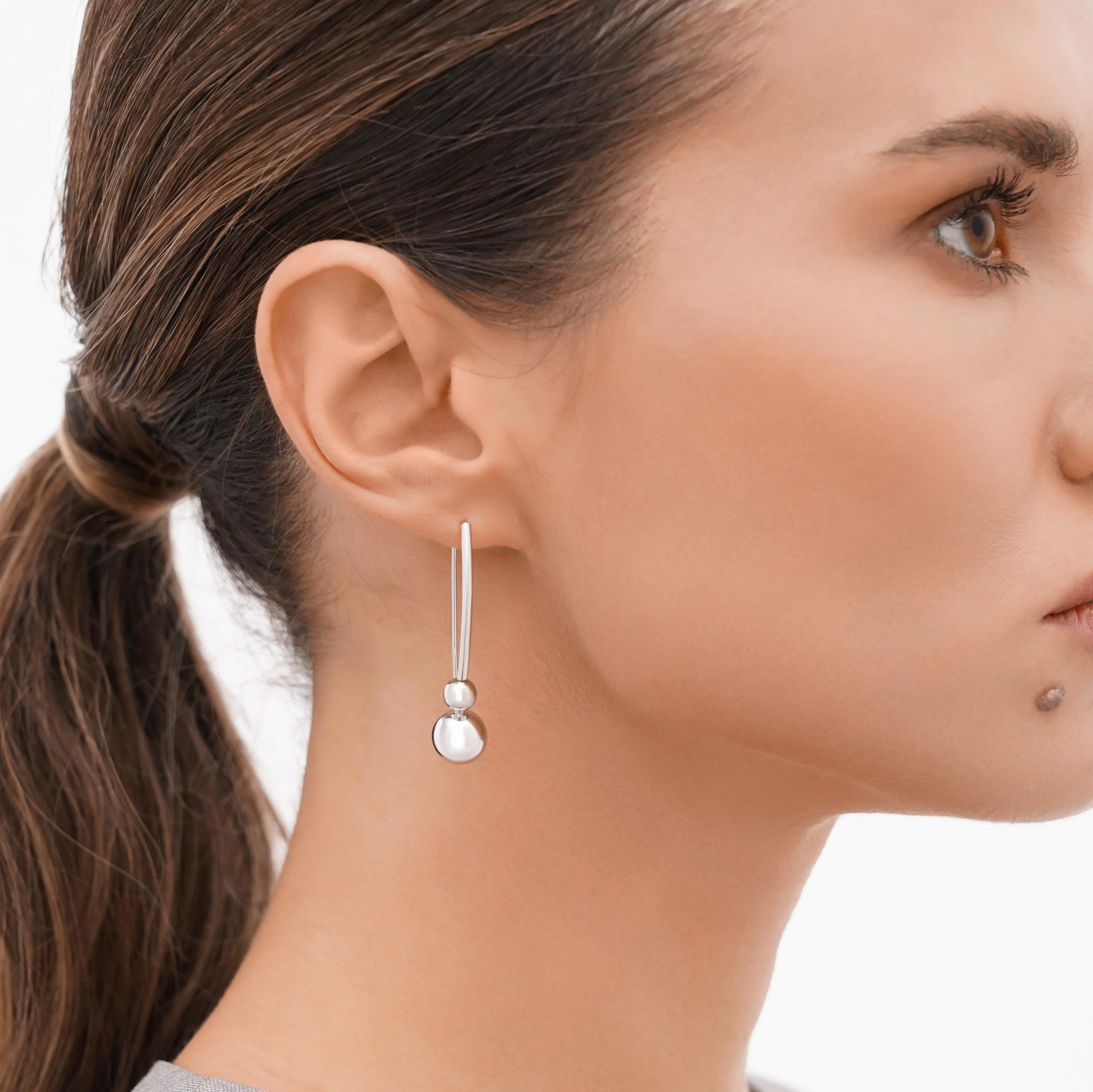 Сережки-петли "Шары" в минималистичном стиле из комбинированного золота - 1872723