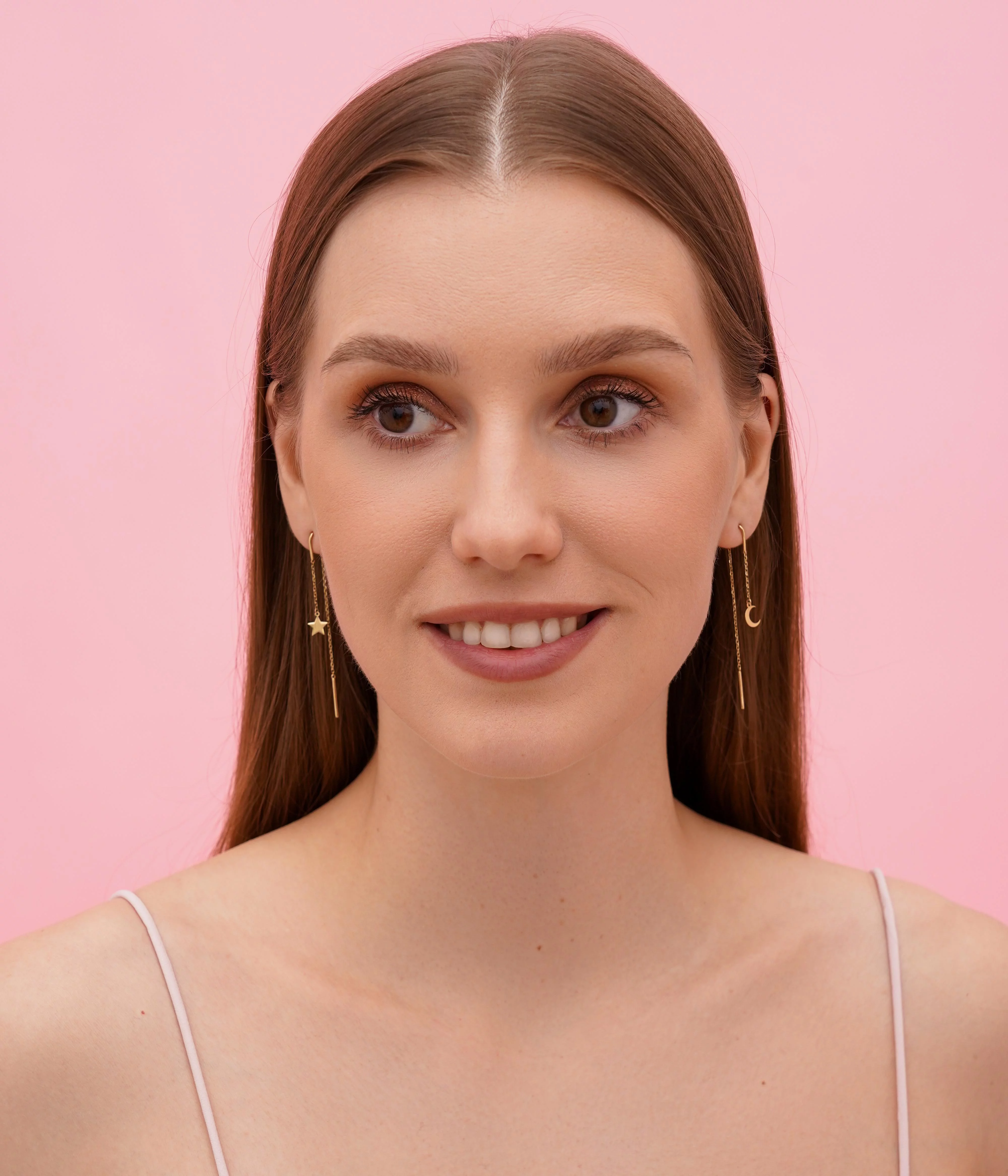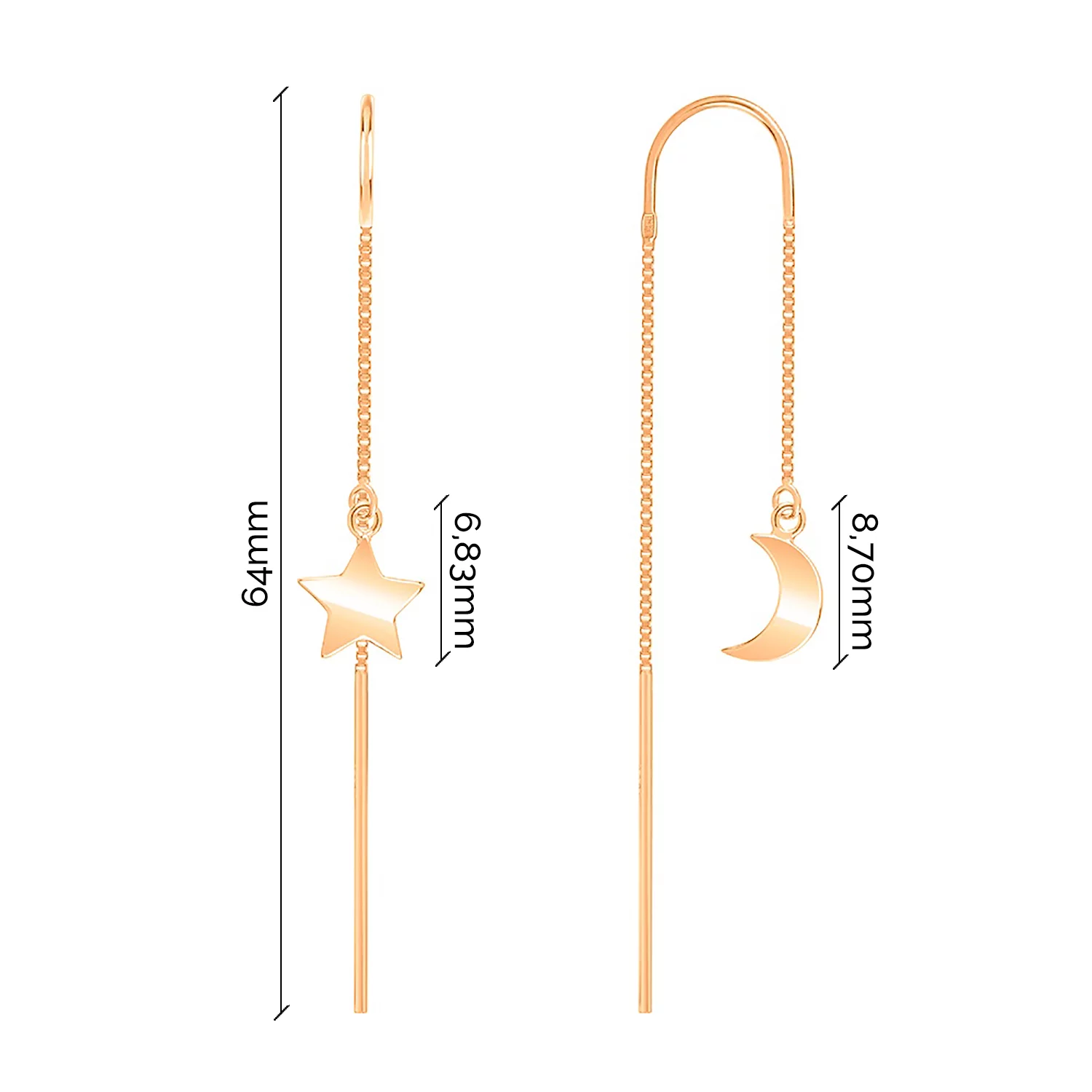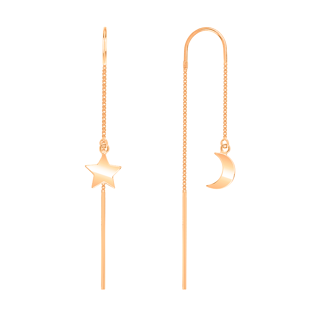 Серьги-протяжки из красного золота с подвесами "Звездное Сияние" - 1552295