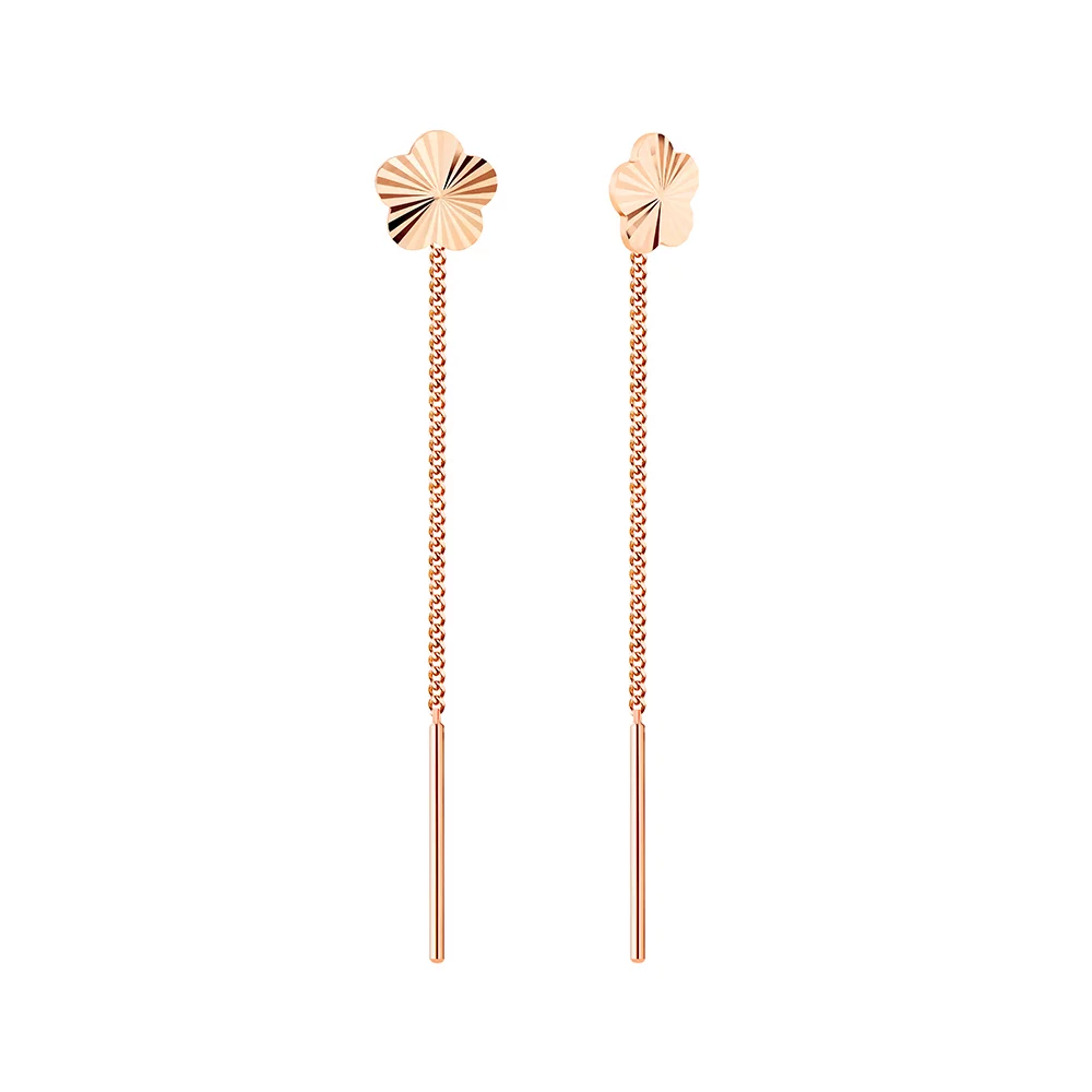 Серьги-протяжки из красного золота "Цветочек" - 1505115