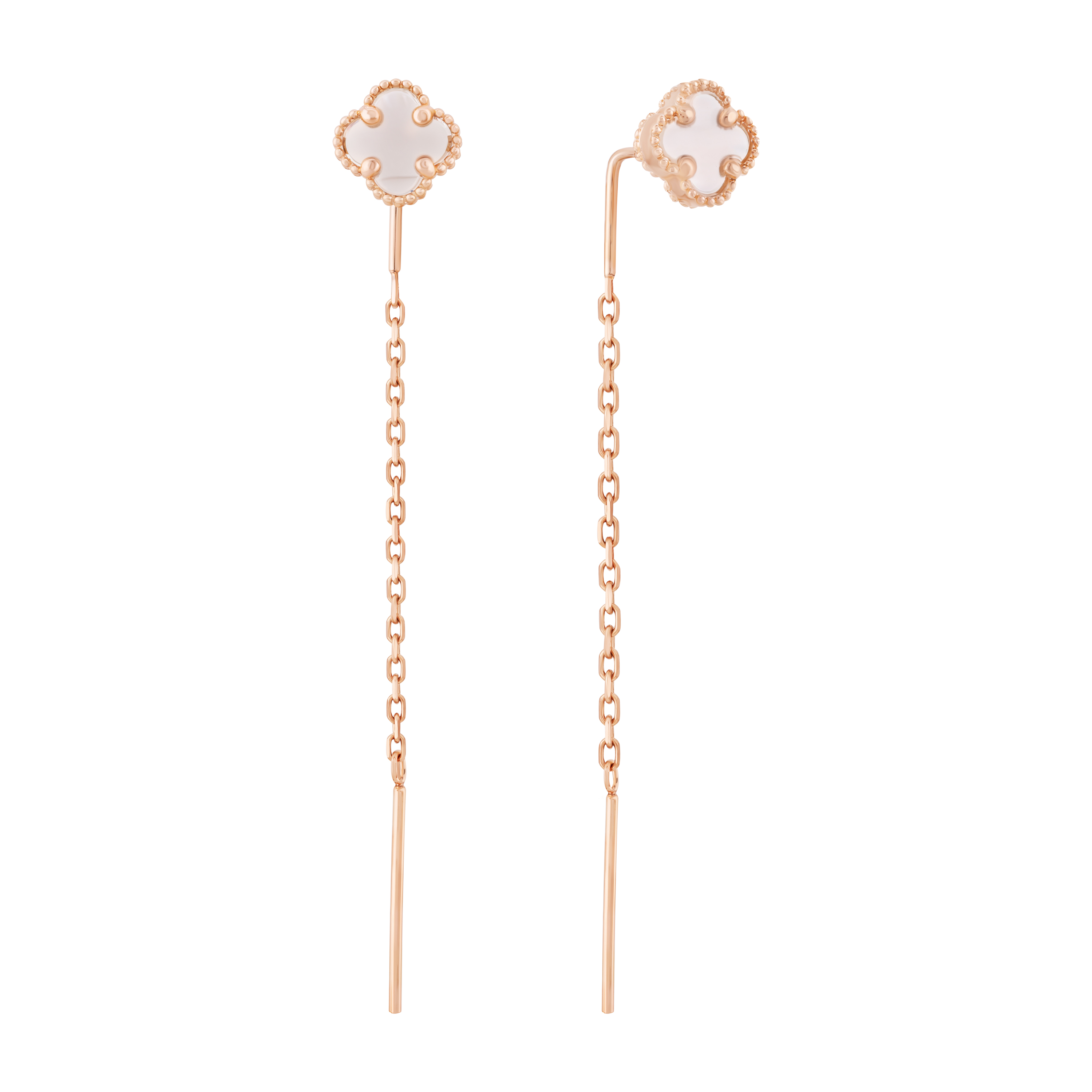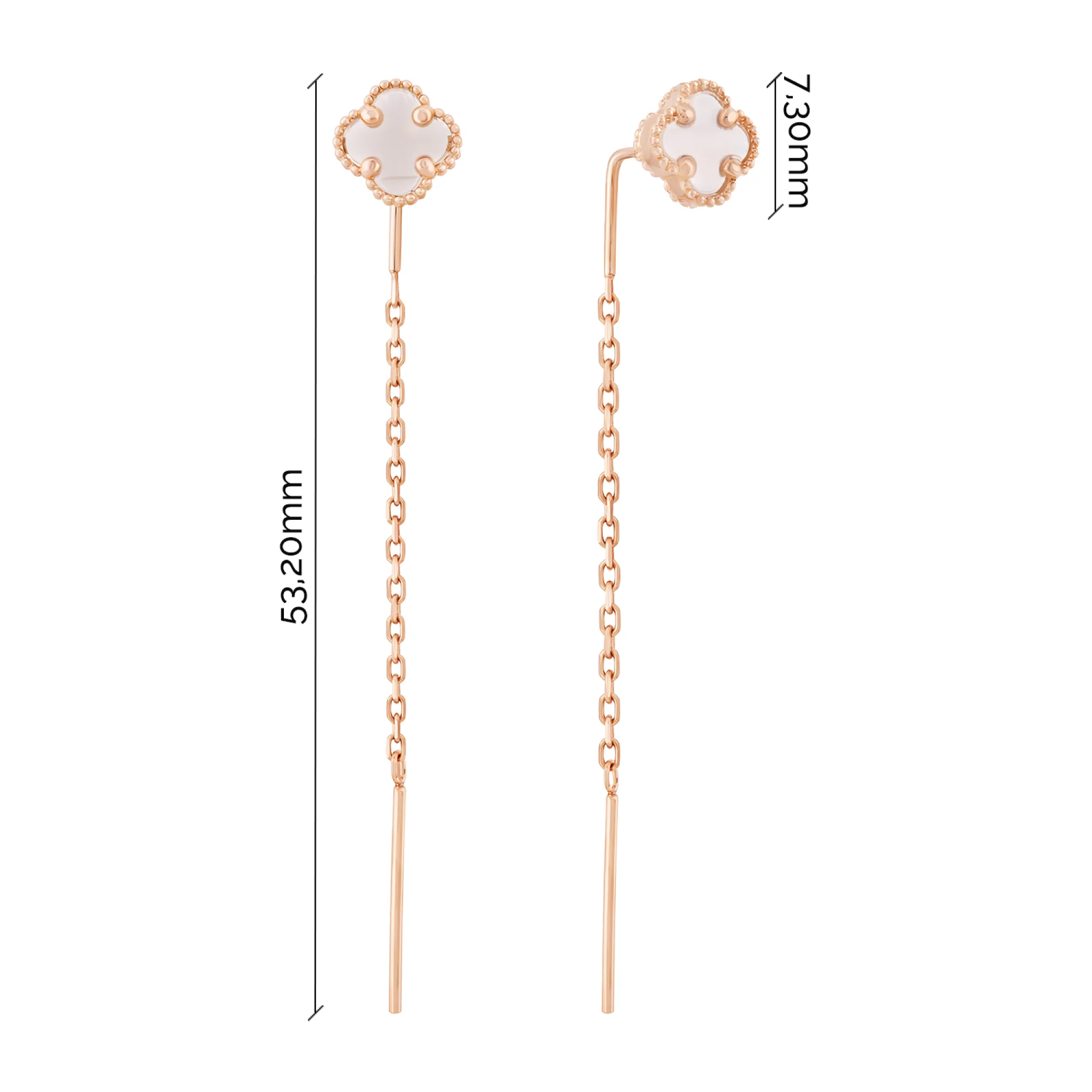 Серьги-протяжки "Клевер" с перламутром в красном золоте - 1987398