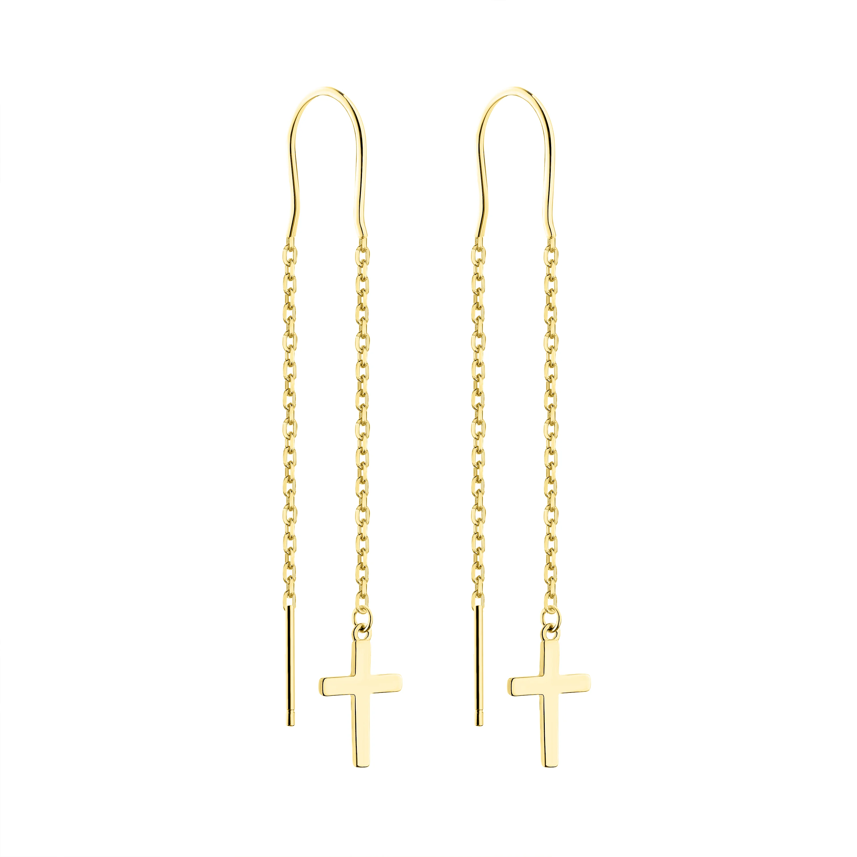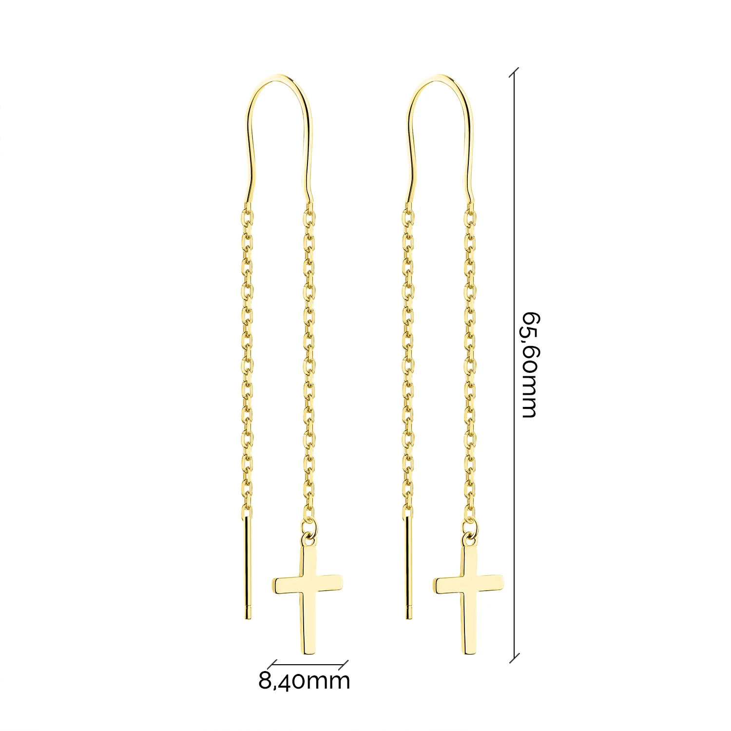 Серьги-протяжки "Крестики" из серебра в желтом родирование - 2134250