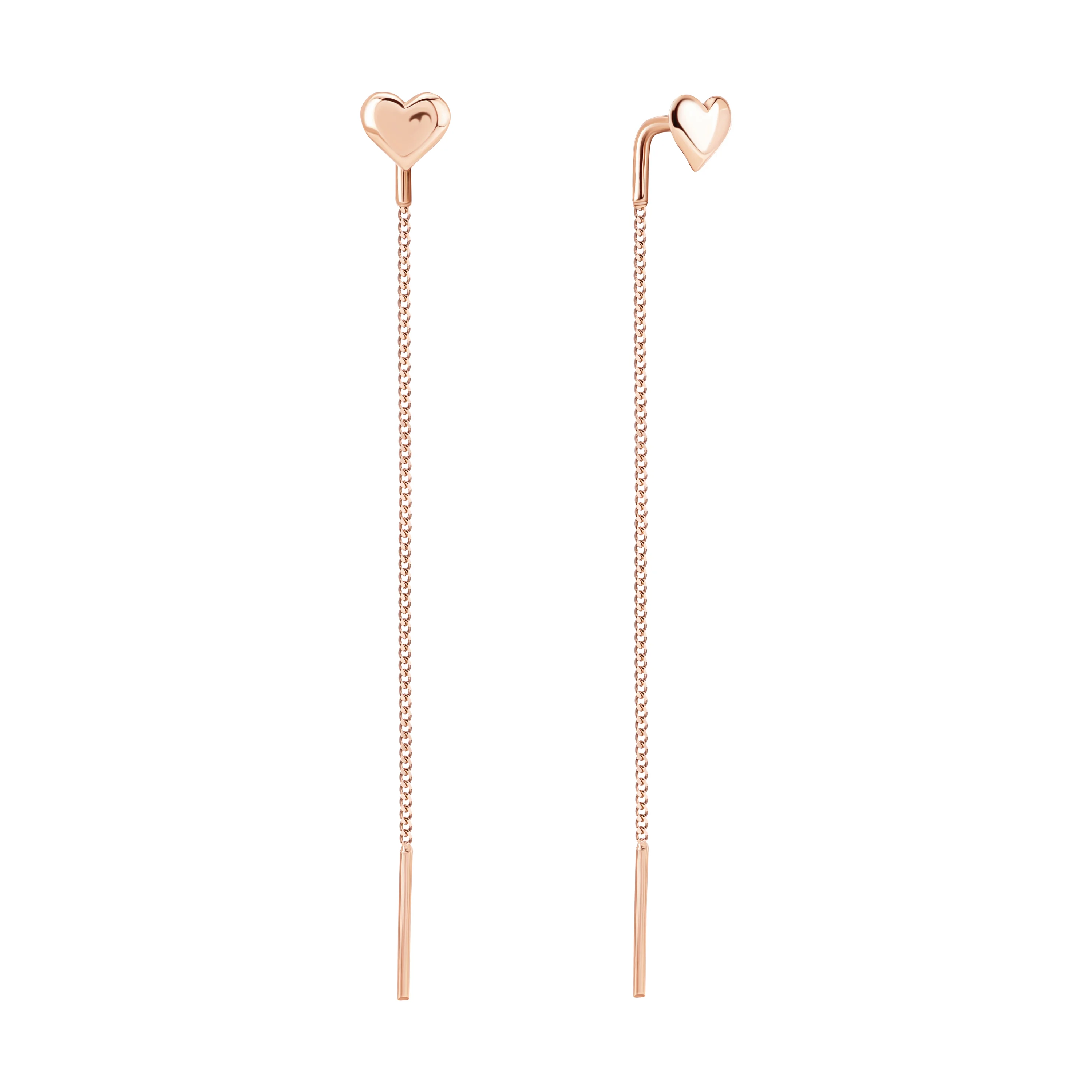 Серьги-протяжки "Сердце" из красного золота - 2035555