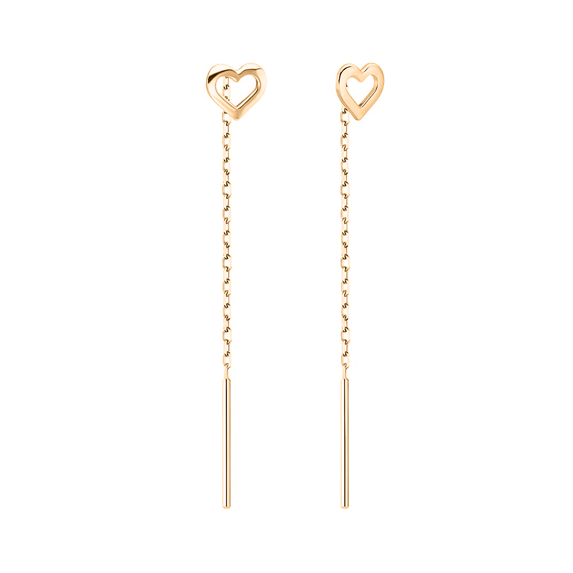Серьги-протяжки "Сердце" из красного золота - 2120732