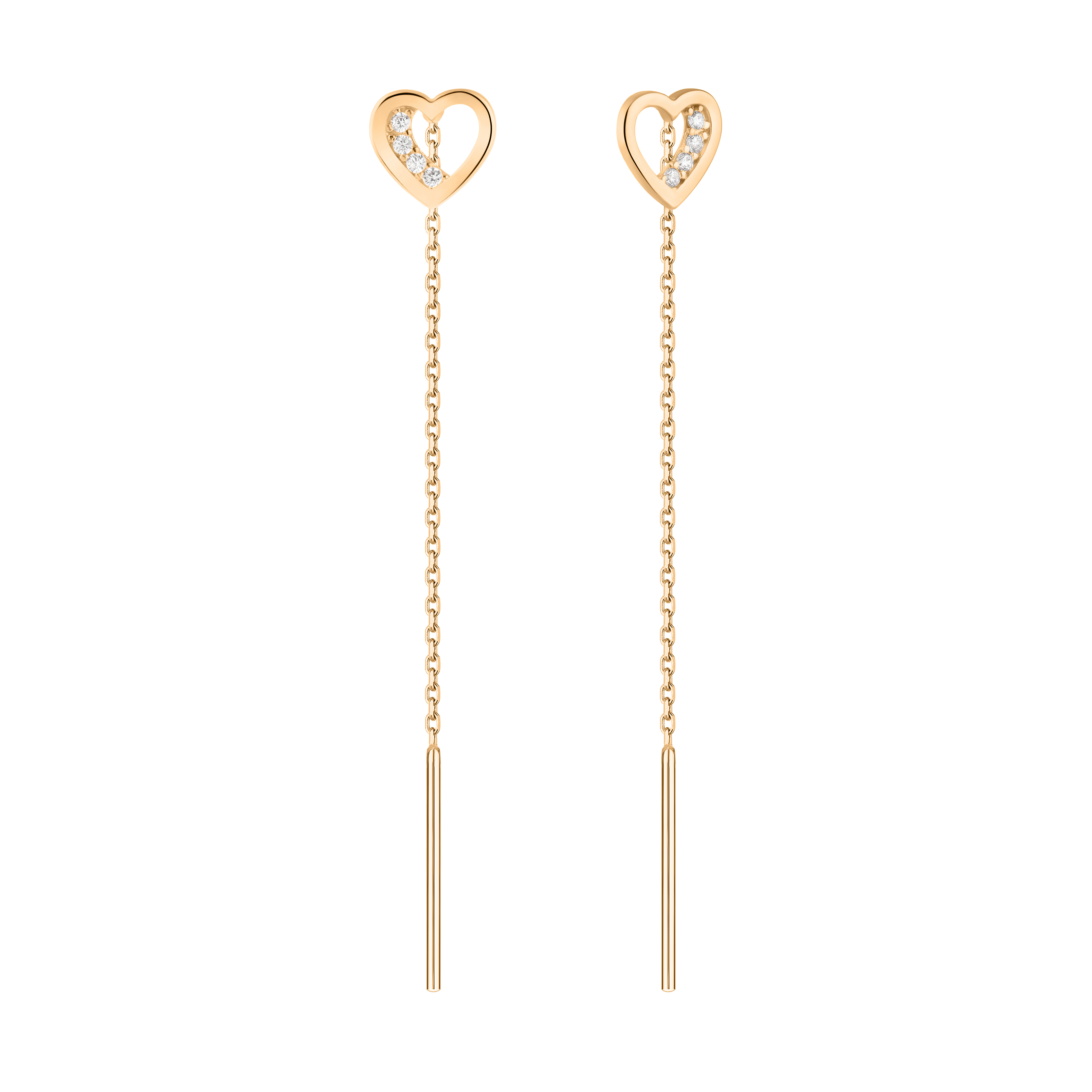 Серьги-протяжки "Сердце" из красного золота с фианитами - 2116967