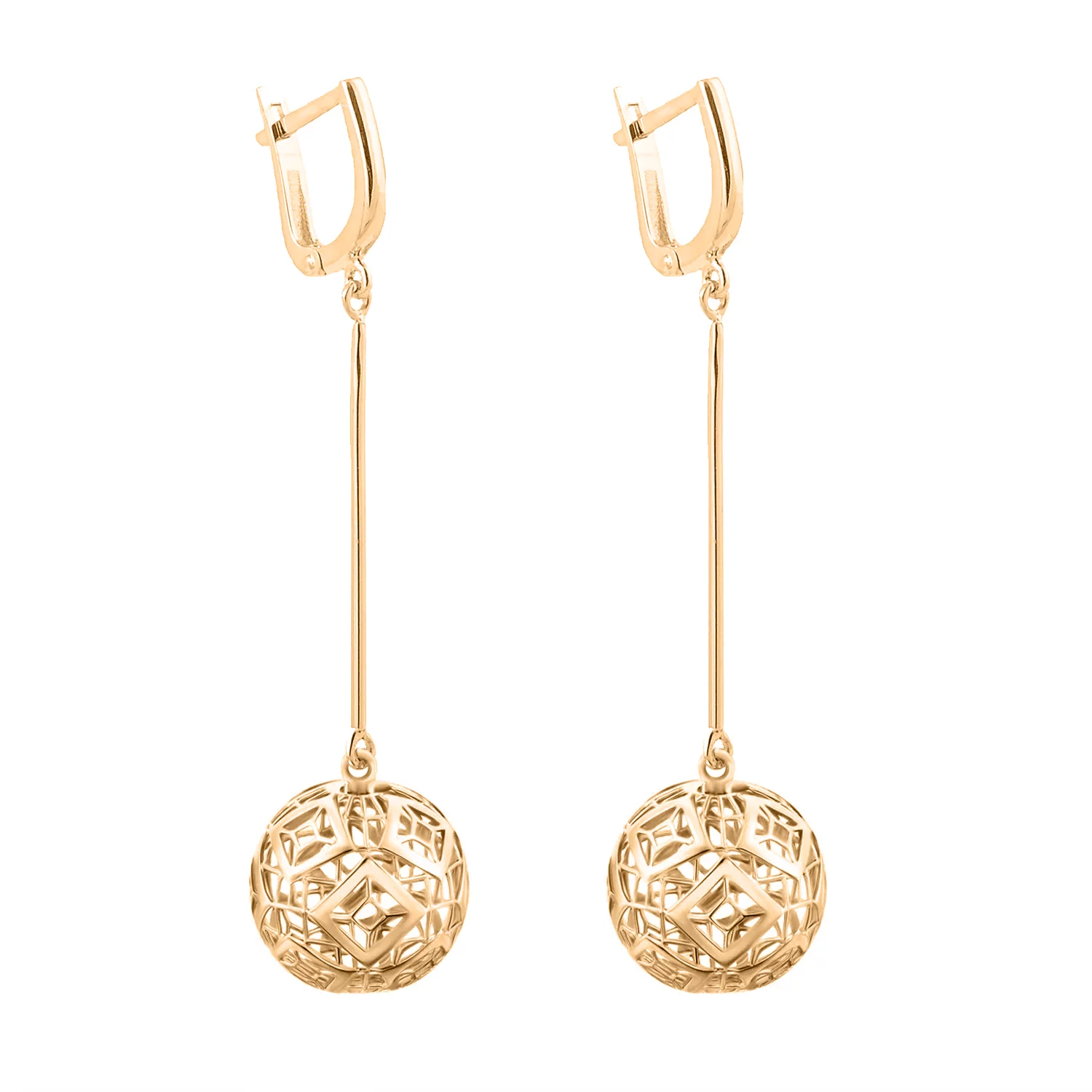 Элегантные сережи в геометрическом стиле с подвесами из красного золота - 1951622