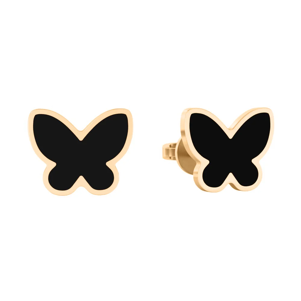Серьги-пусеты "Бабочка" в красном золоте с эмалью - 2120779