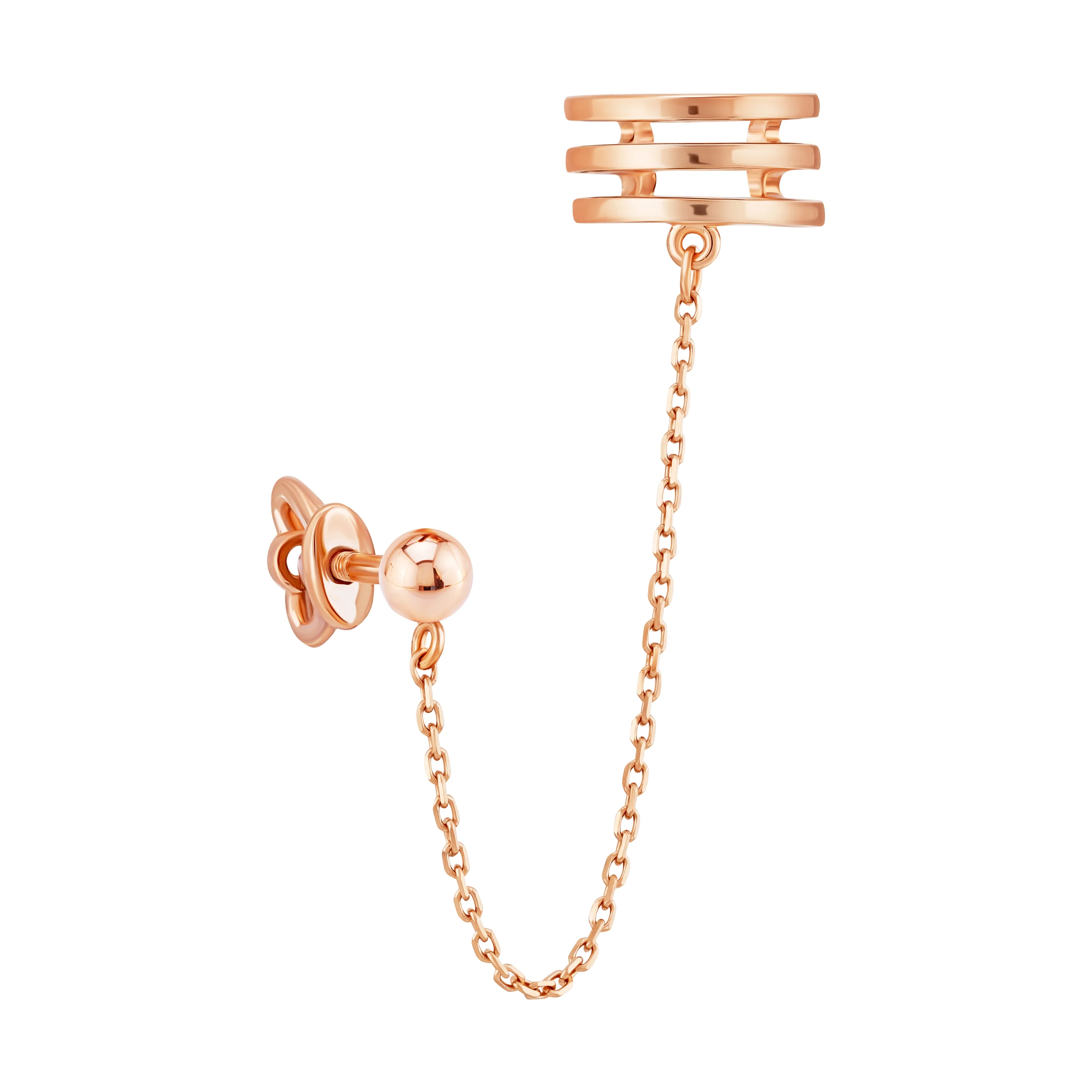 Моно серьга-пусет из красного золота с каффой и цепочкой - 2101880