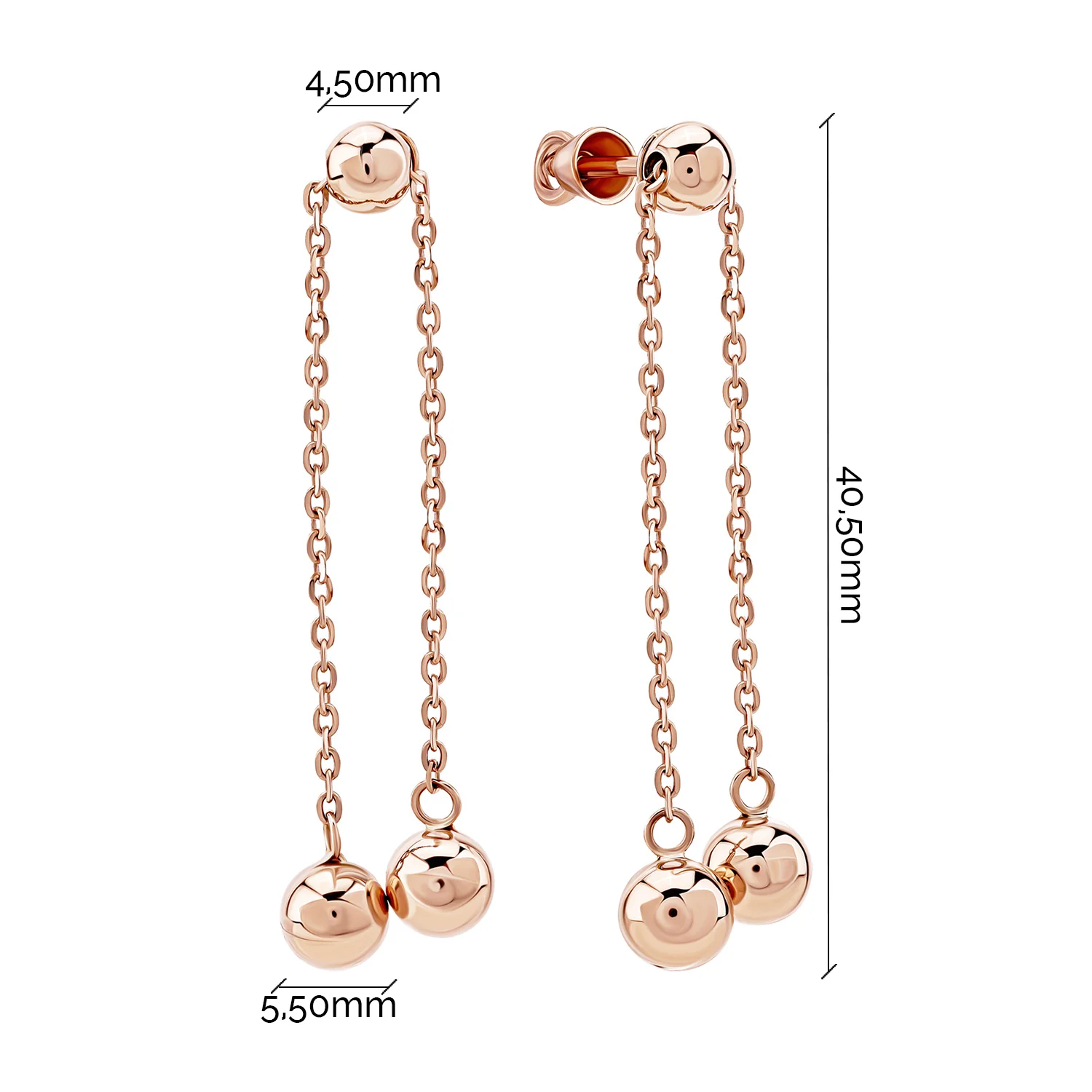 Серьги-пусеты "Шары" из красного золота с подвесом - 2009355