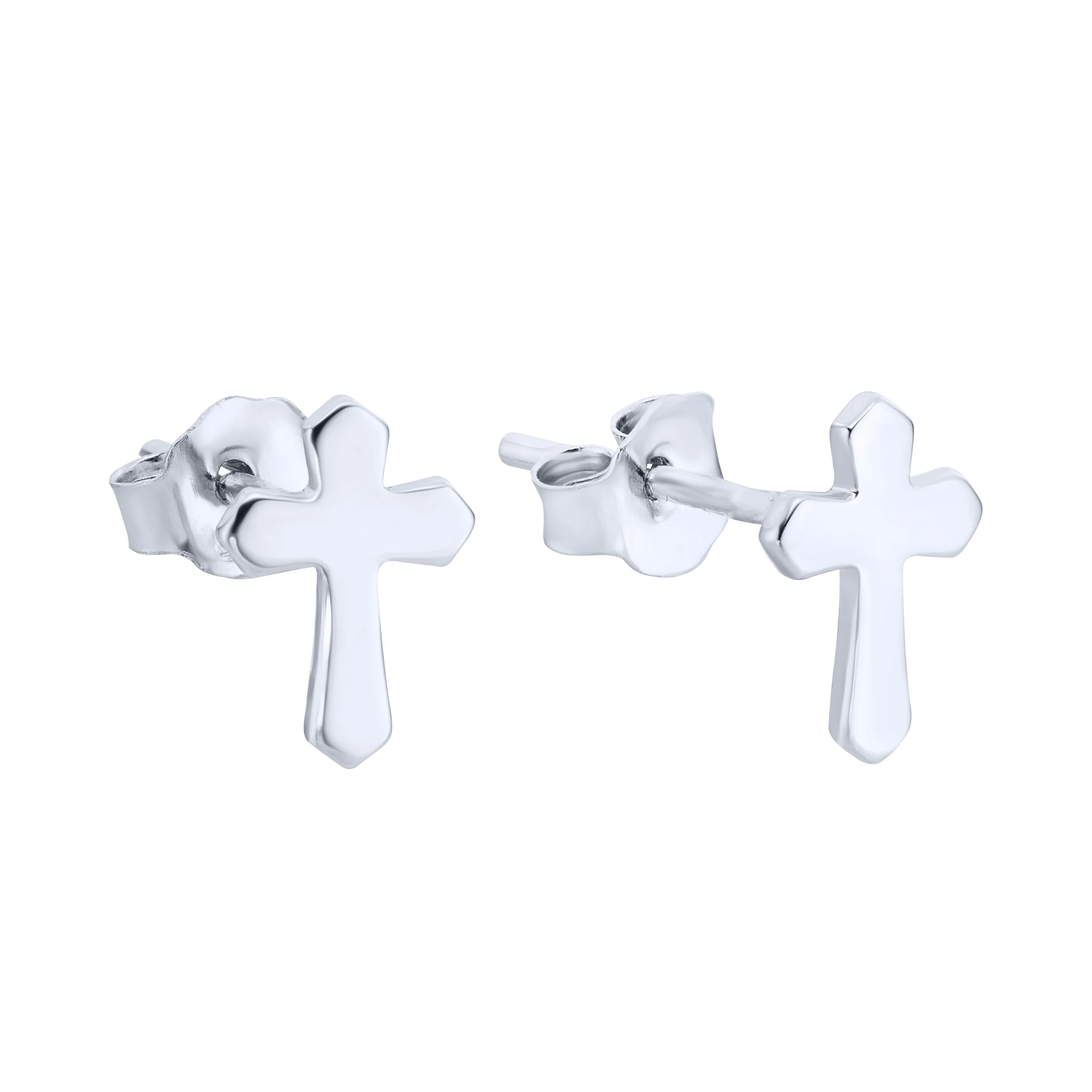 Серьги-пусеты "Крестик" из серебра - 2221115