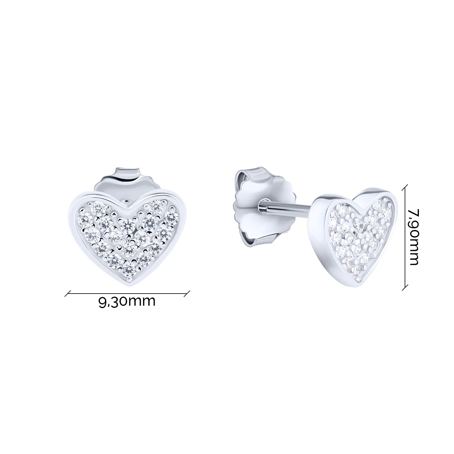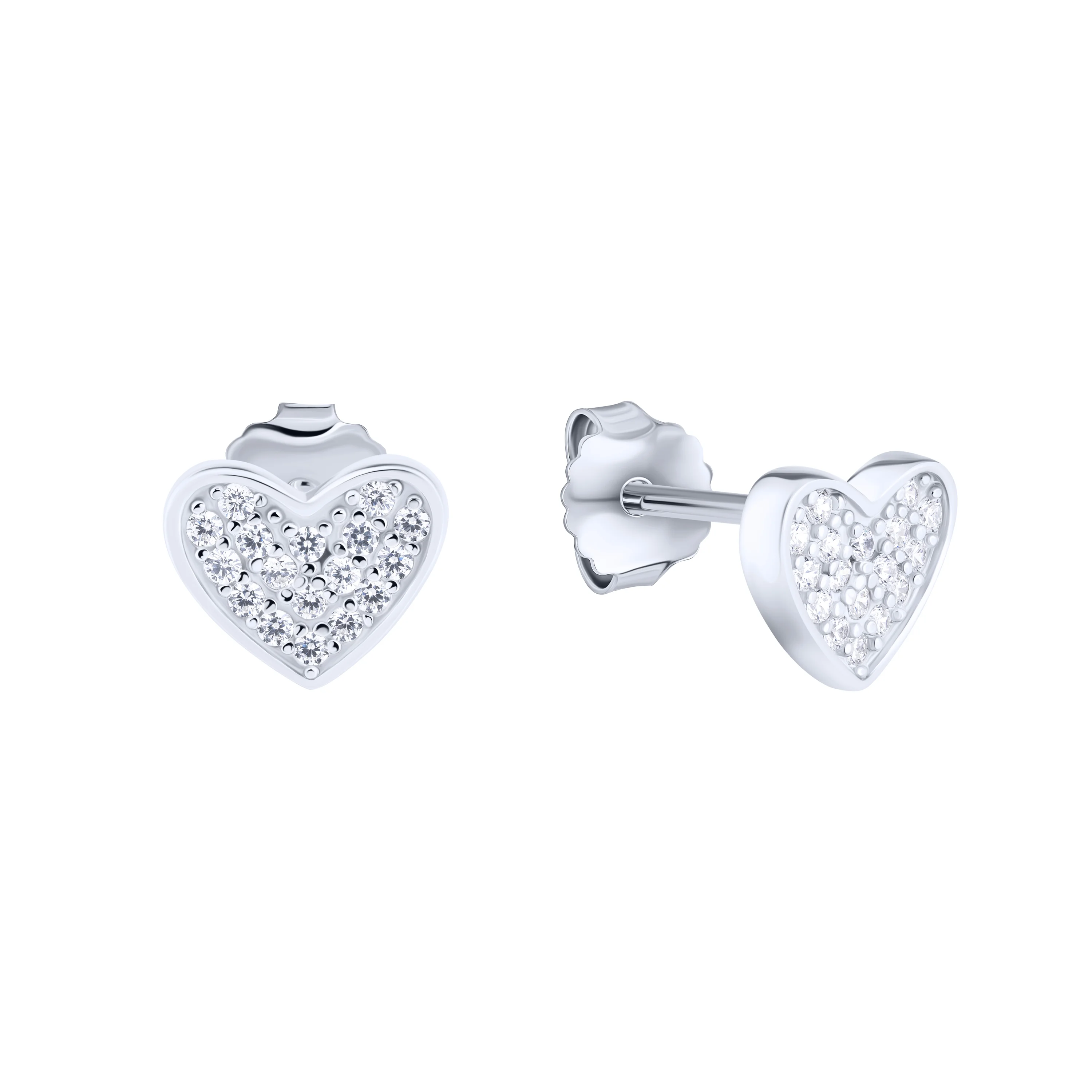 Серьги-пусеты "Сердце" из серебра с фианитами - 2133541