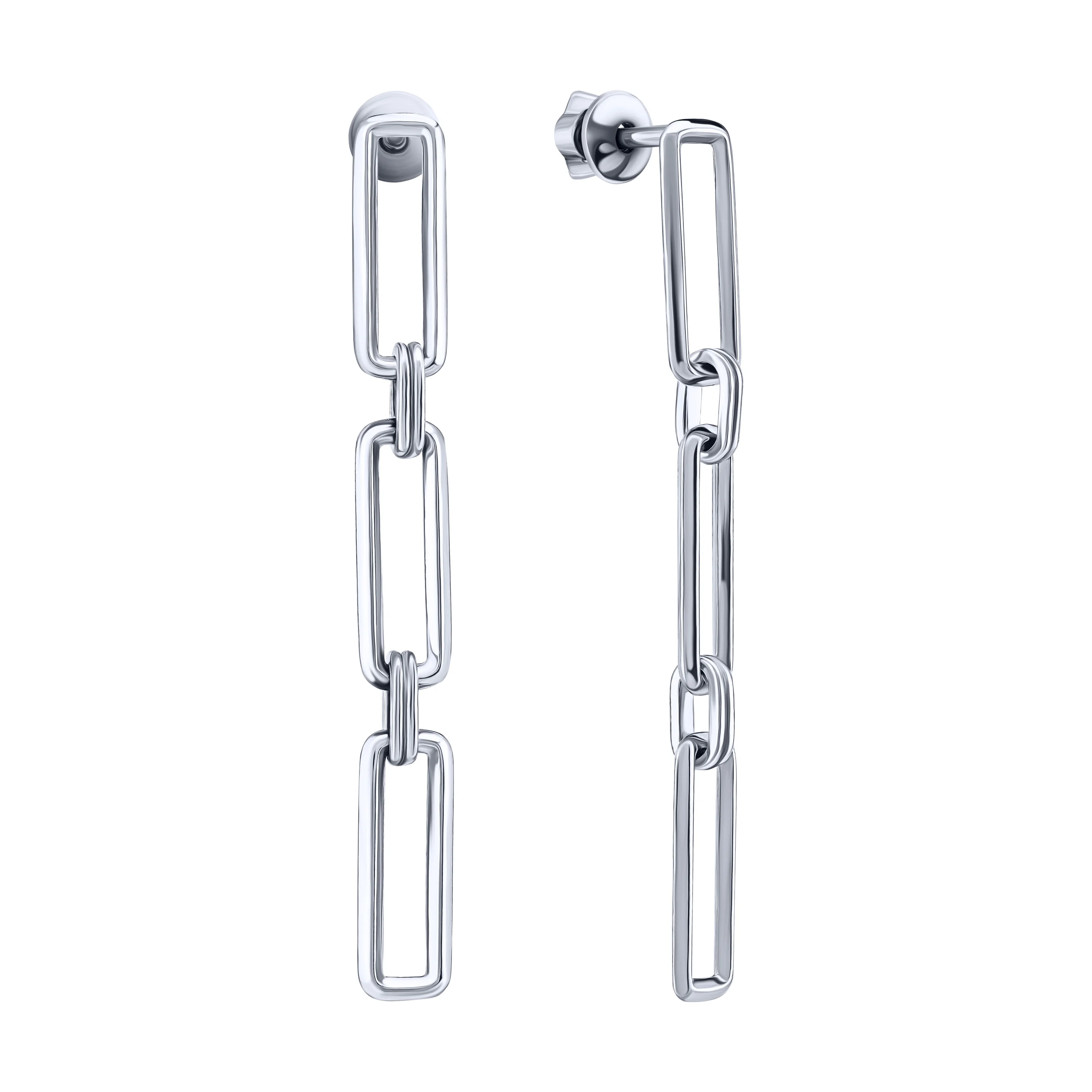 Серьги-пусеты серебряные с подвесами "Цепь" - 2083537