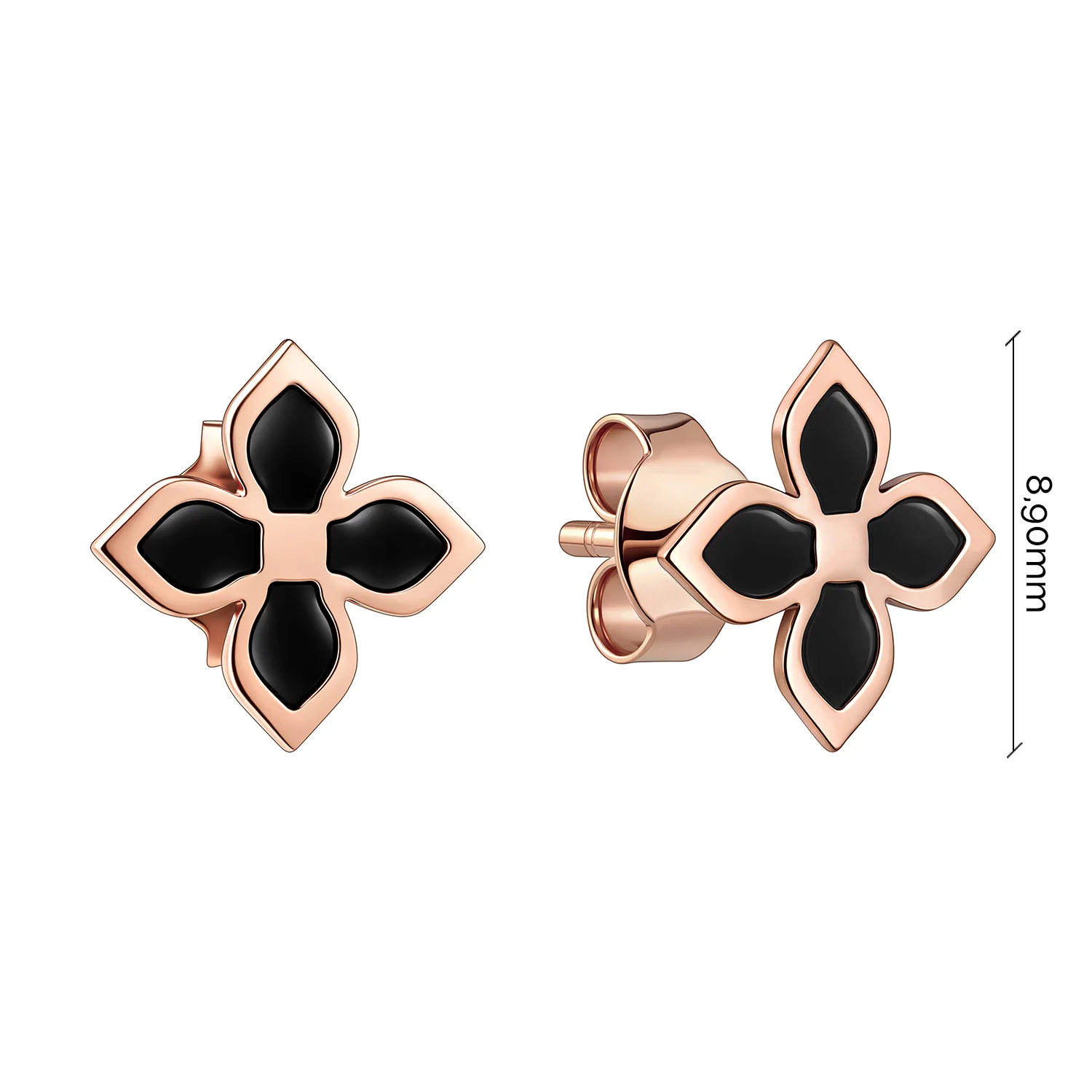 Серьги-пусеты "Цветок" из красного золота с эмалью - 2134665