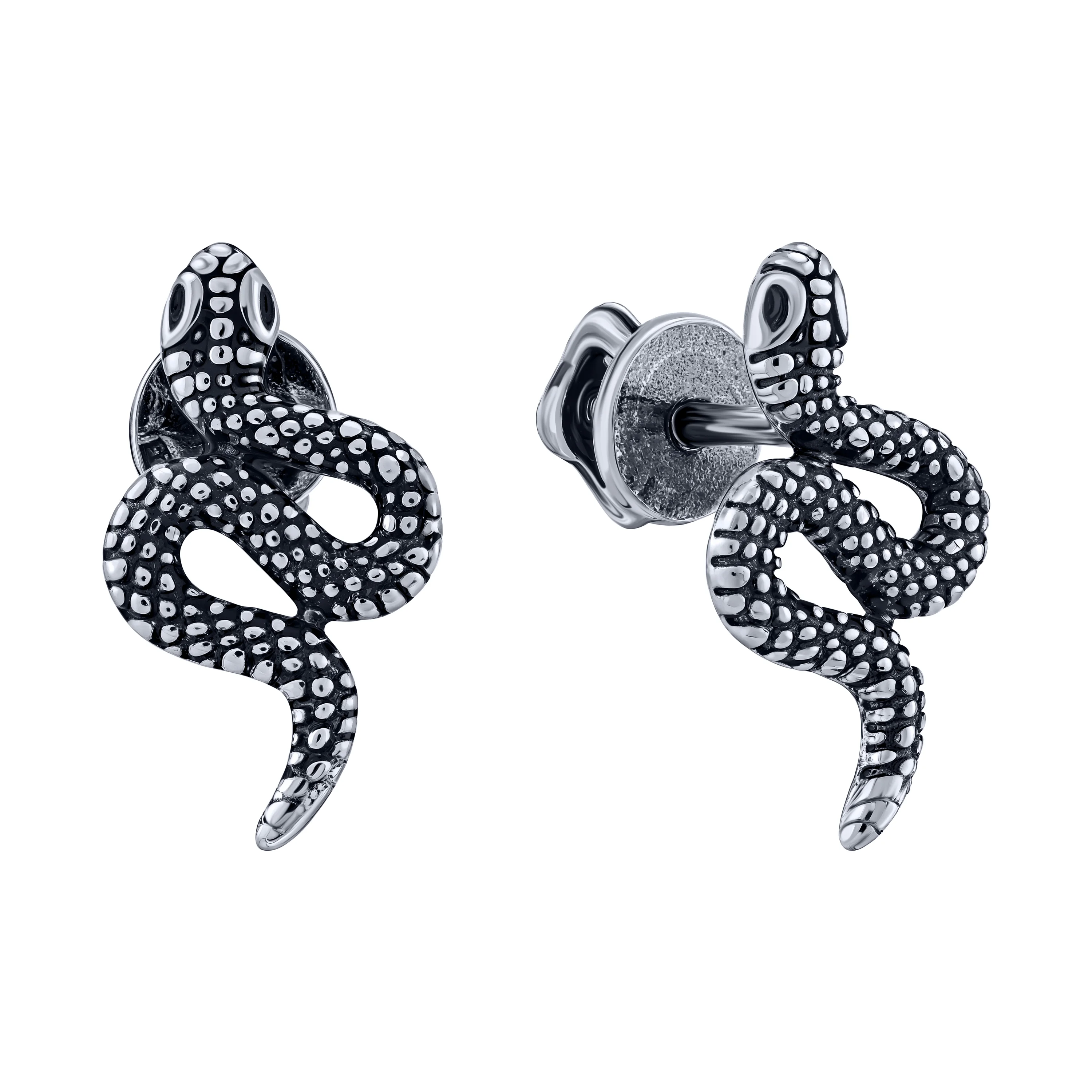 Серьги-пусеты "Змея" в серебре с эмалью - 2095815