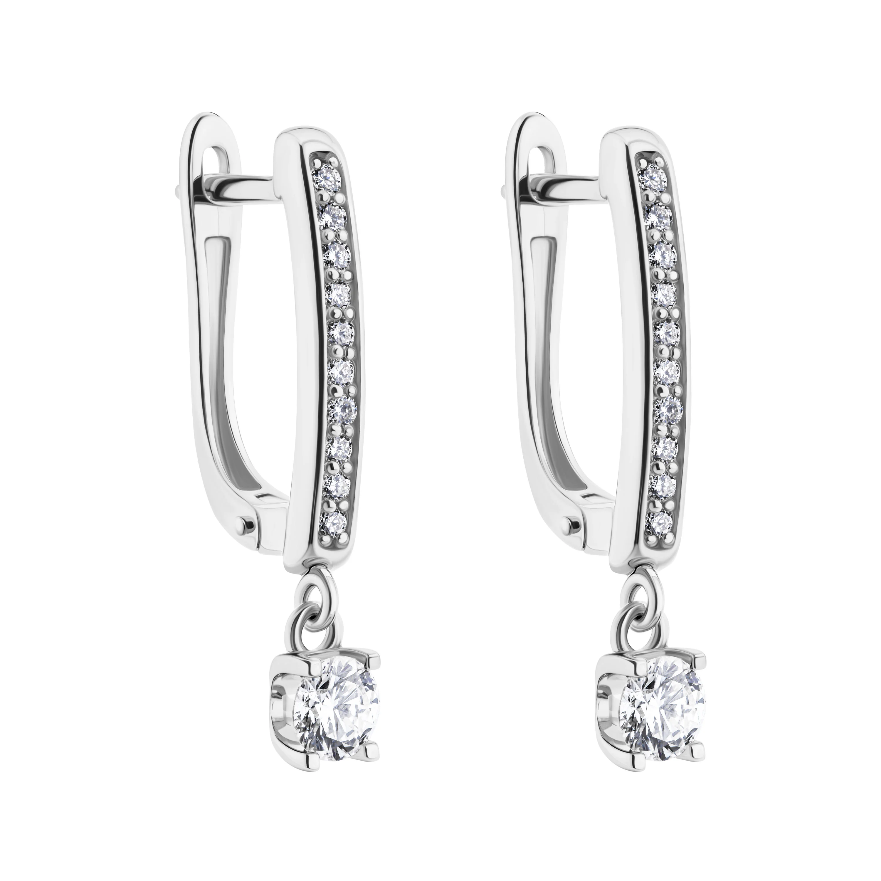 Серьги с бриллиантами в белом золоте с подвесом - 2178257