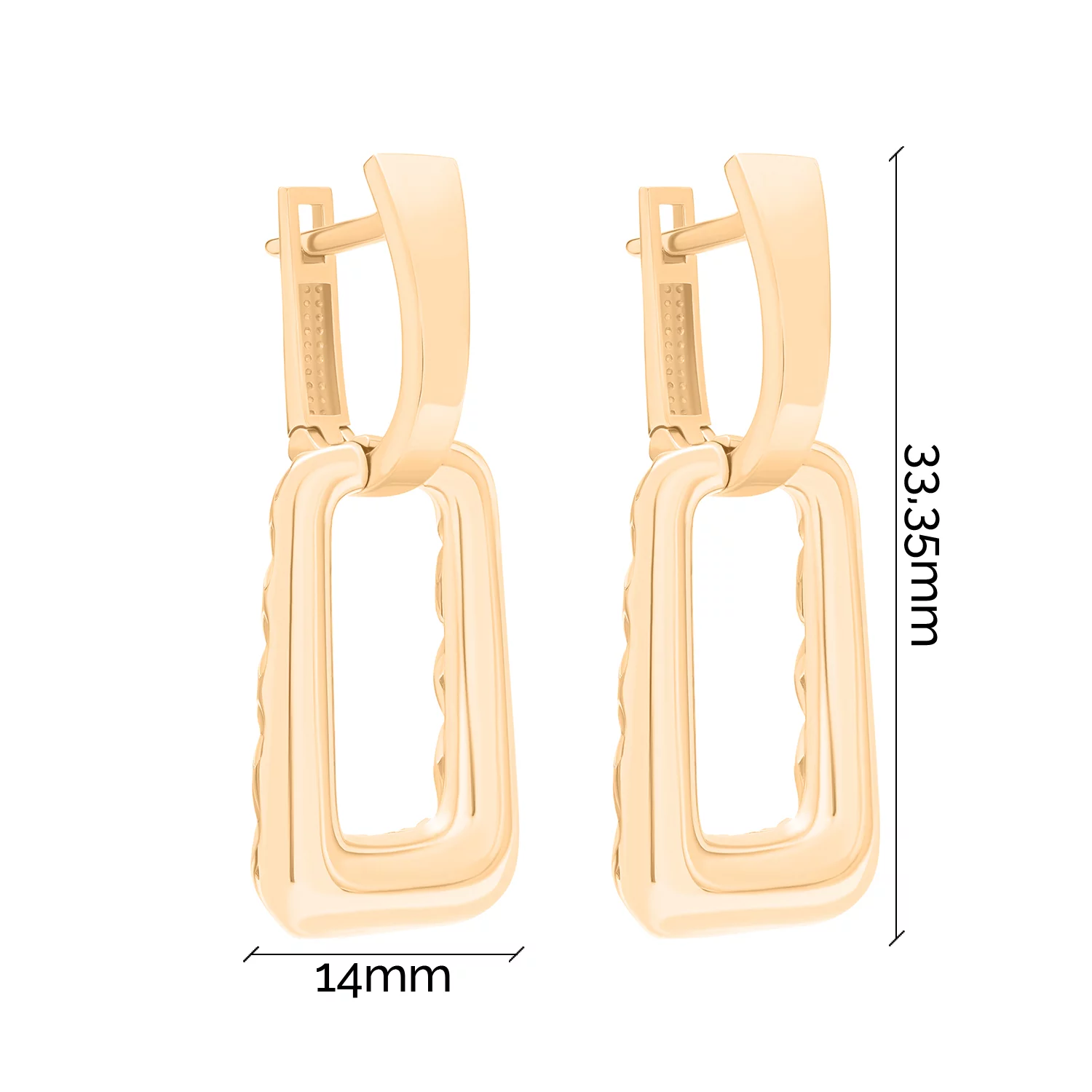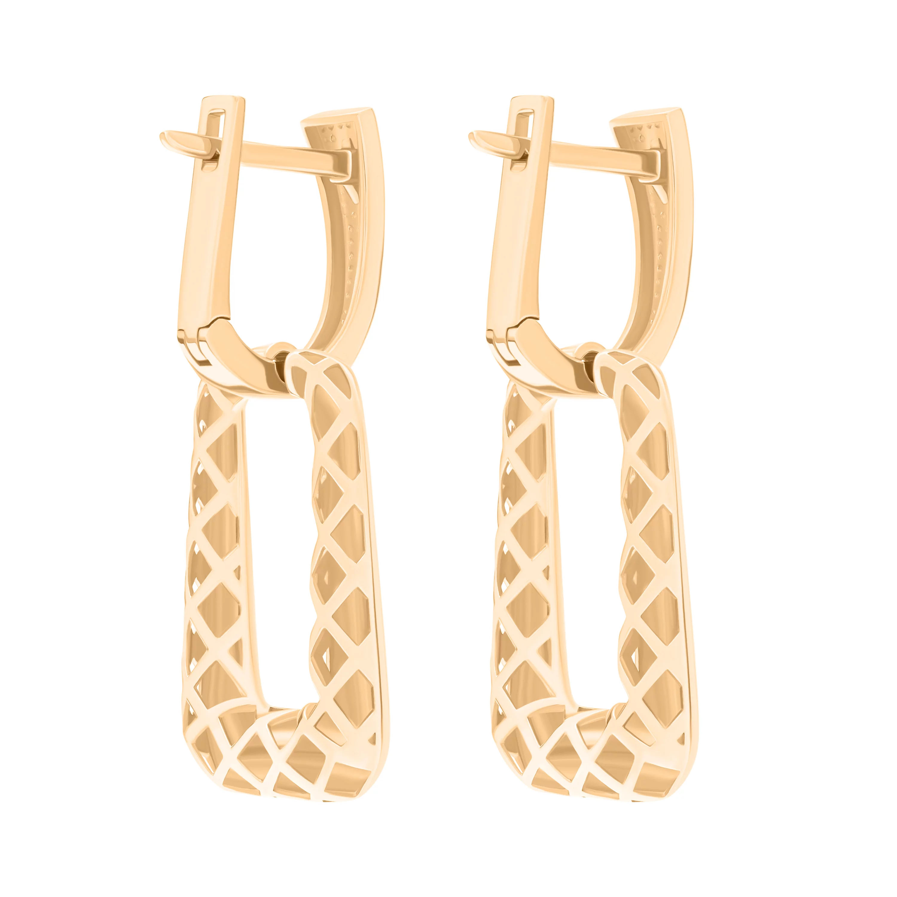 Серьги из красного золота с подвесами "Кольца" с алмазной гранью - 1562490