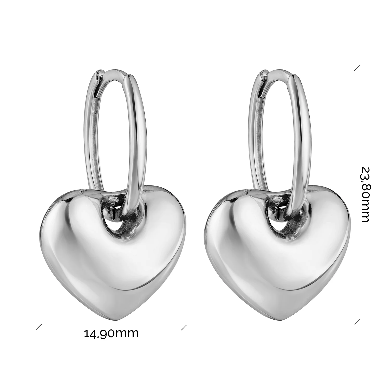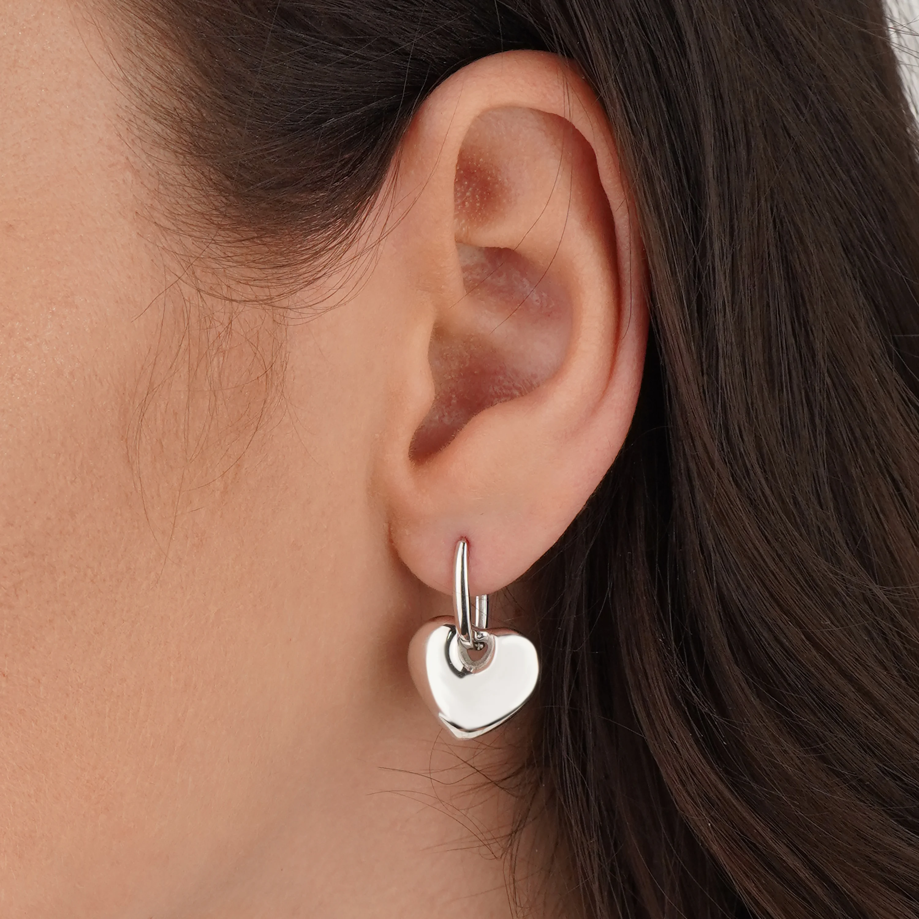 Серьги-кольца трансформеры "Сердце" с подвесом из белого золота - 2187434