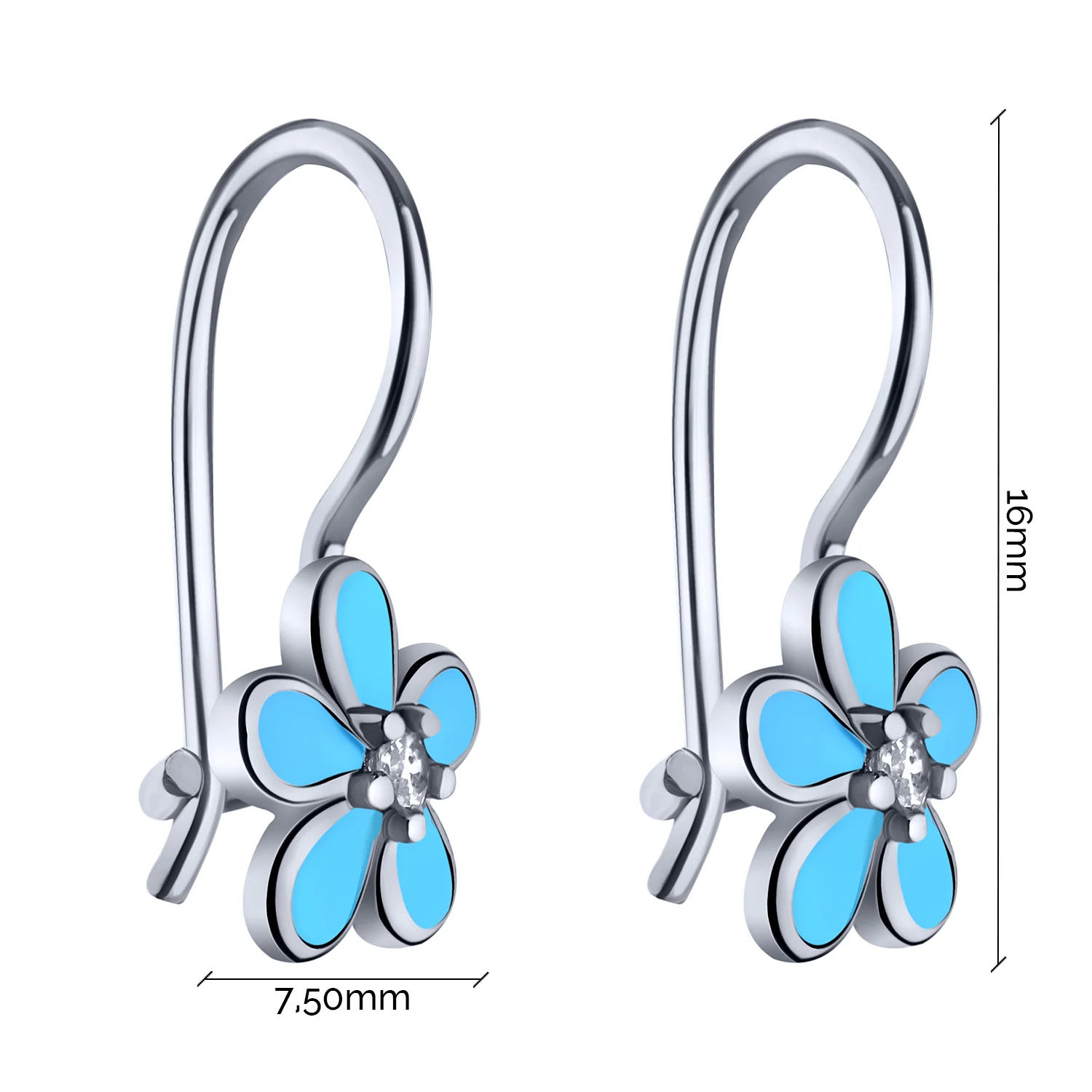Серьги-петли серебряные детские "Цветок" с фианитами и эмалью - 2007930