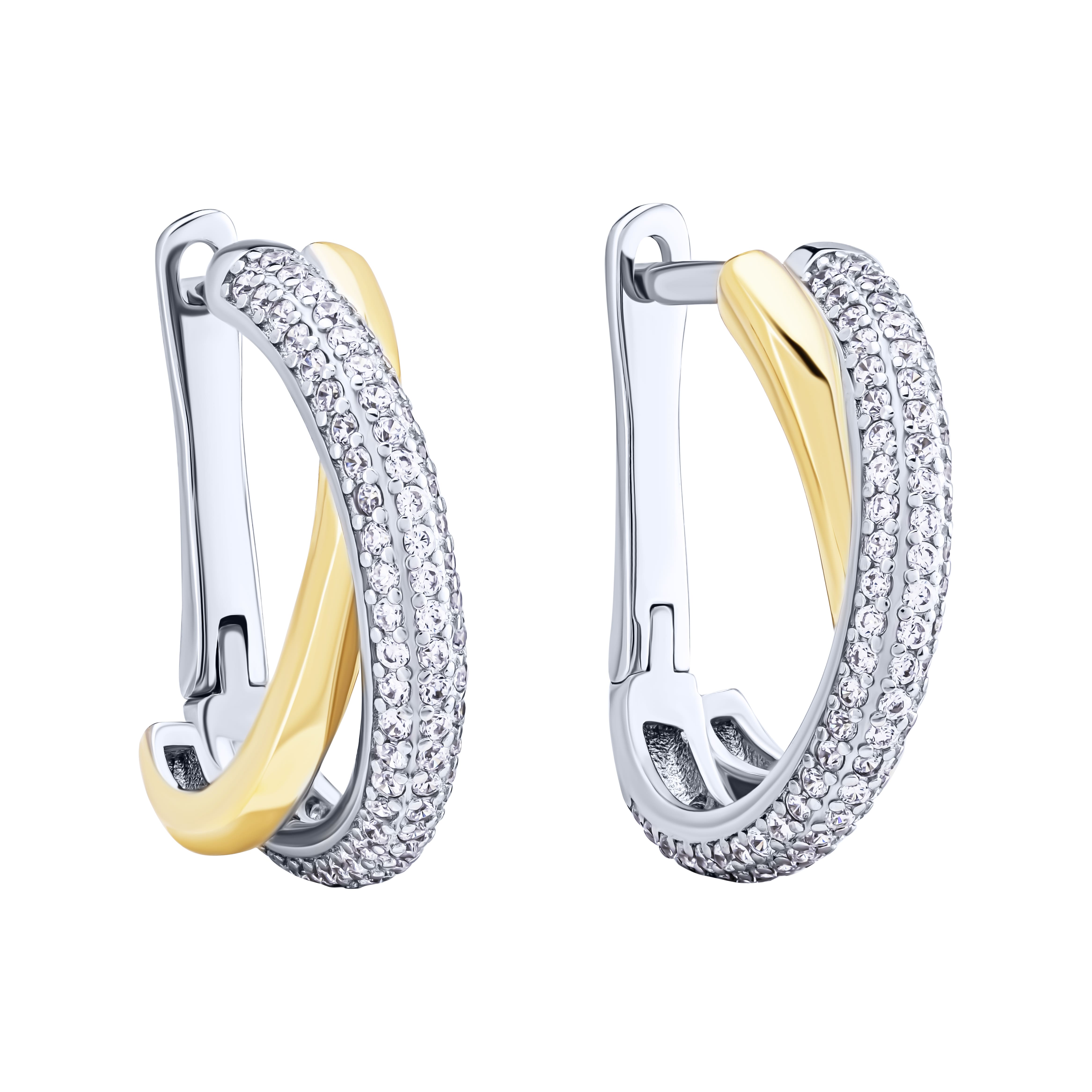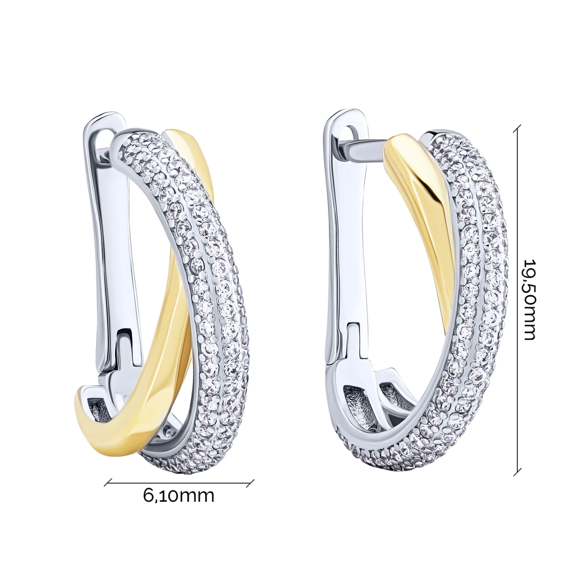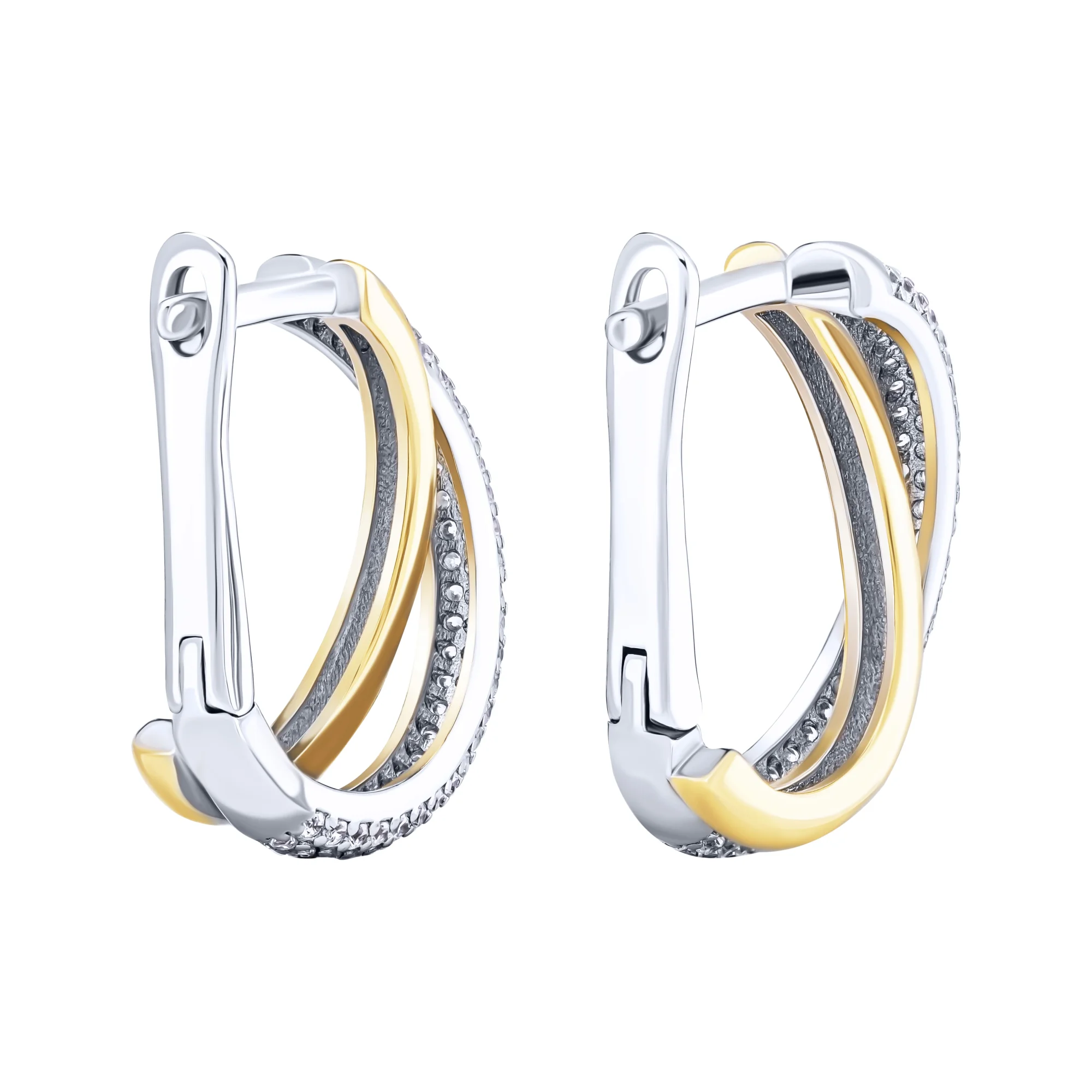 Серьги серебряные "Переплетение" с фианитами и желтым родированием - 2095185