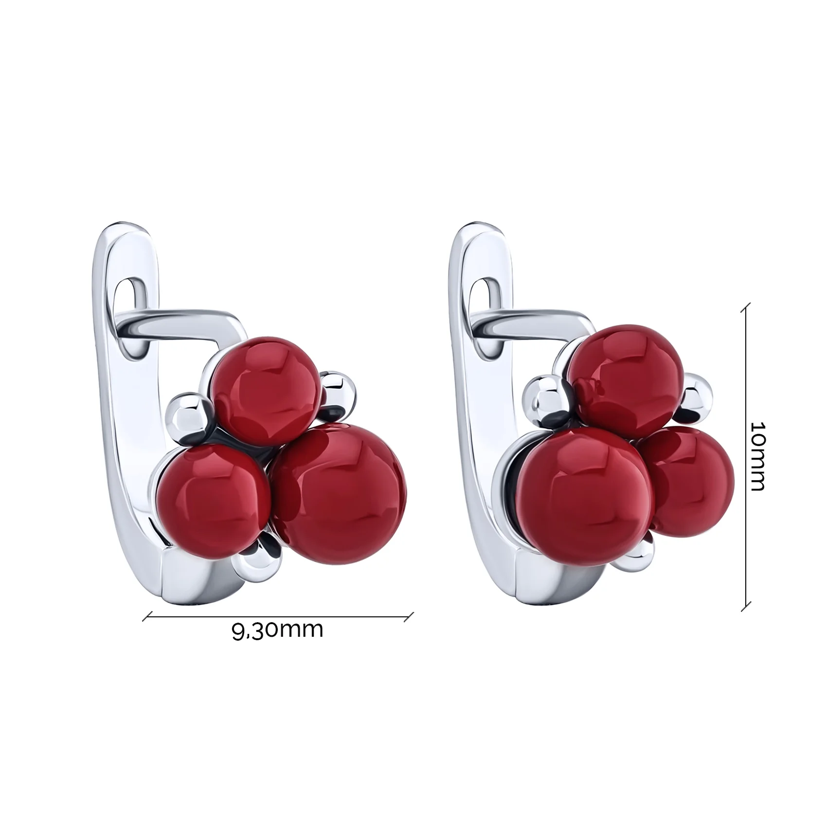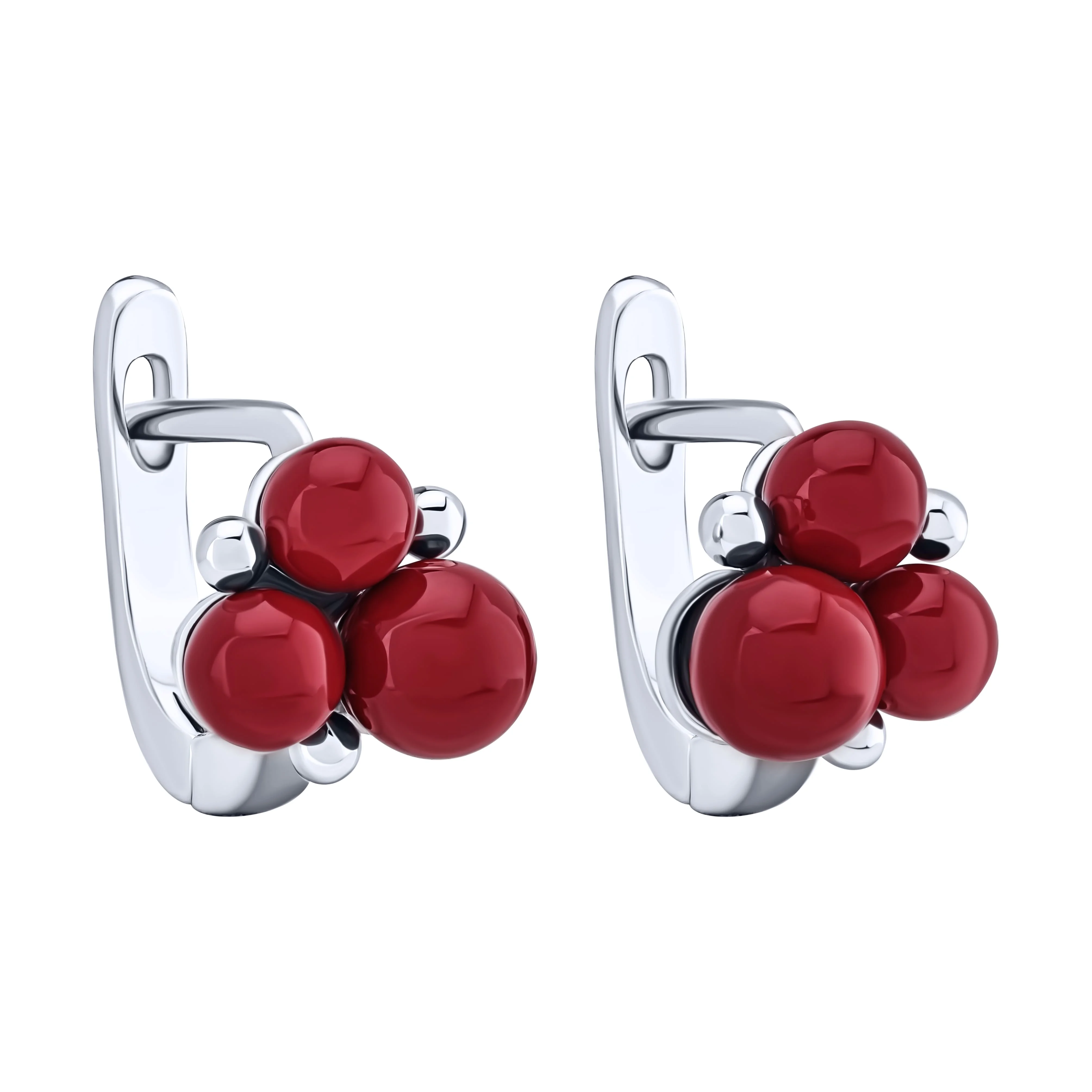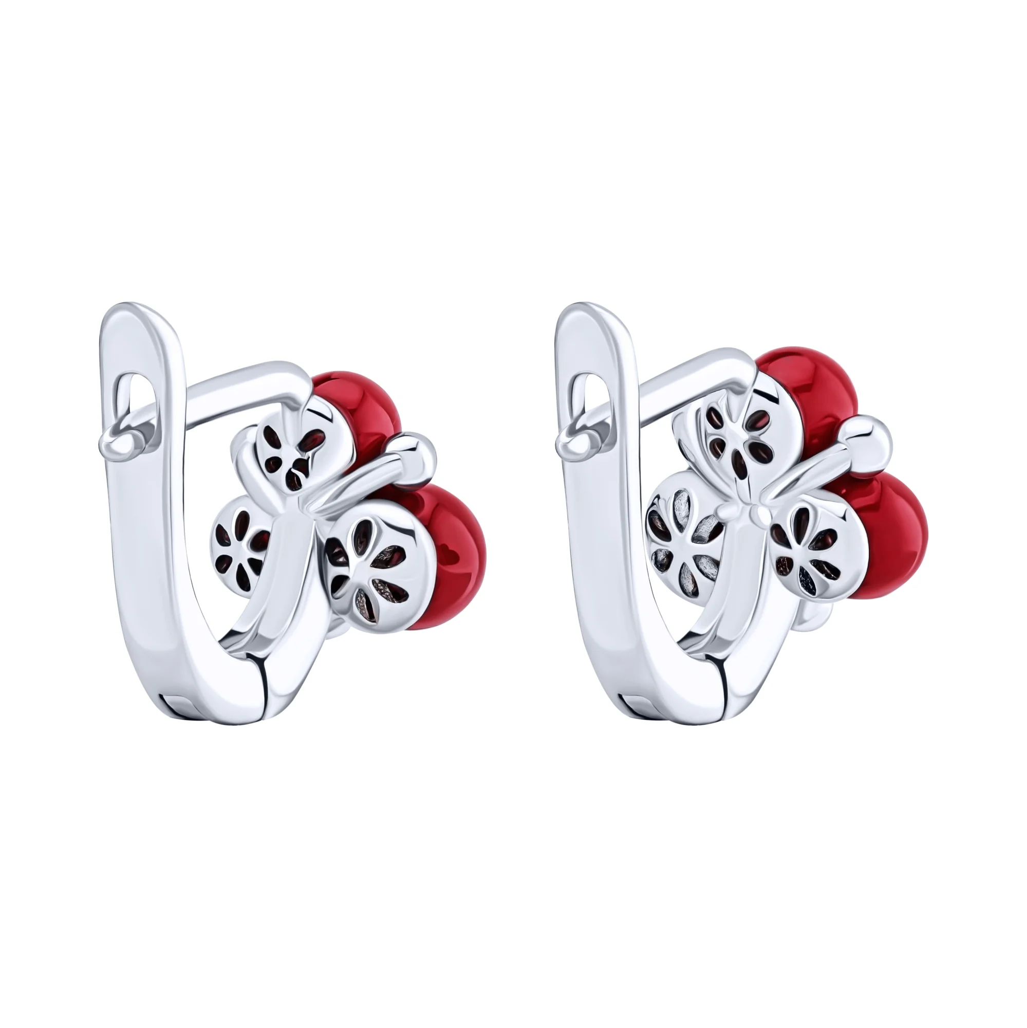 Серебряные сережки-гвоздики "Клевер" с желтым родированием с малахитом и фианитами - 1880151