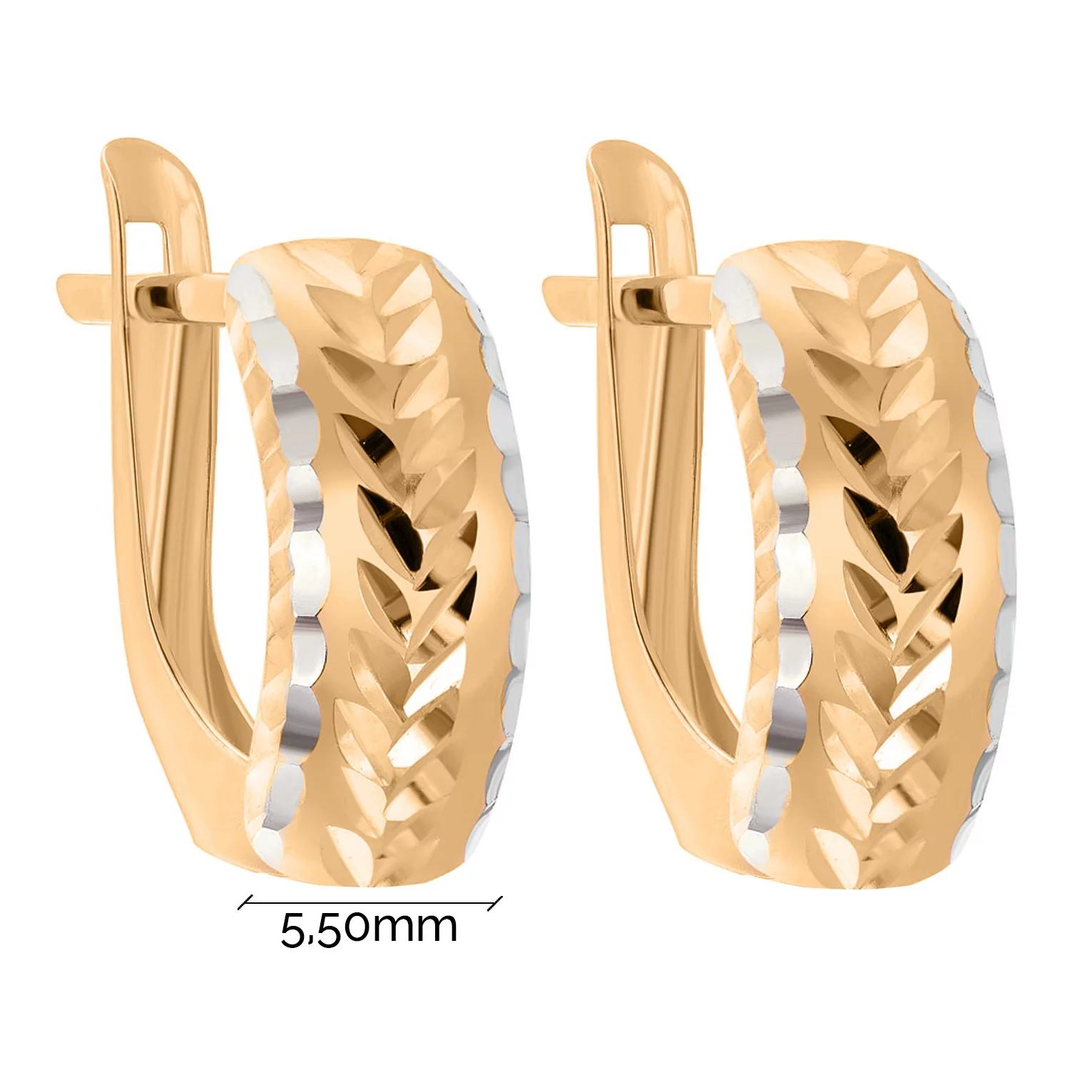 Стильные сережки-кольца в комбинированном золоте с алмазной гранью - 1877791