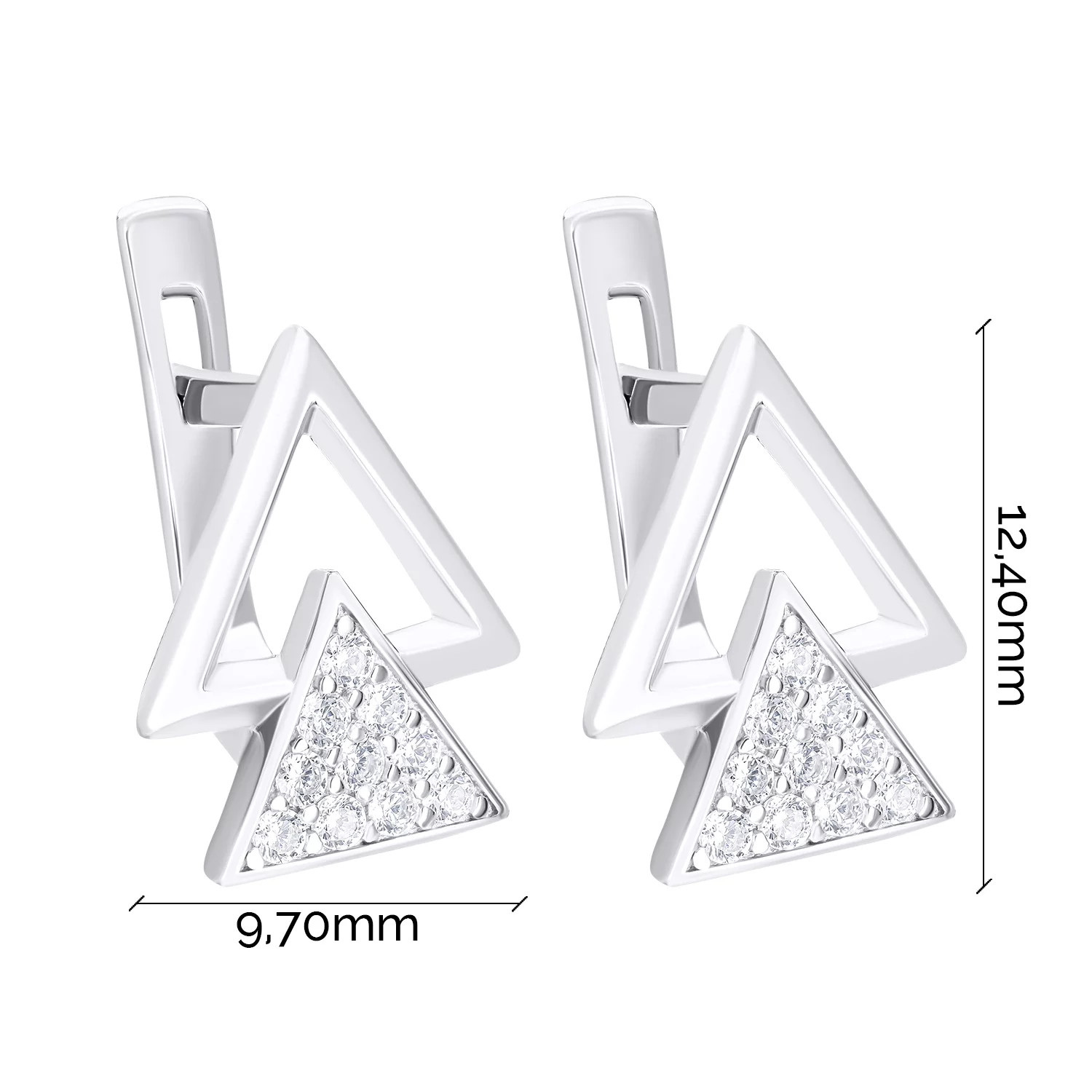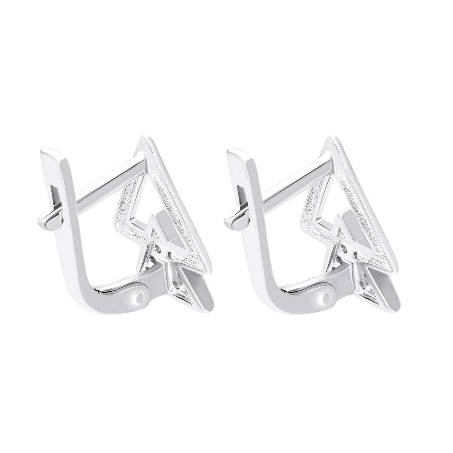 Серьги "Треугольники" из серебра с фианитами - 1545854