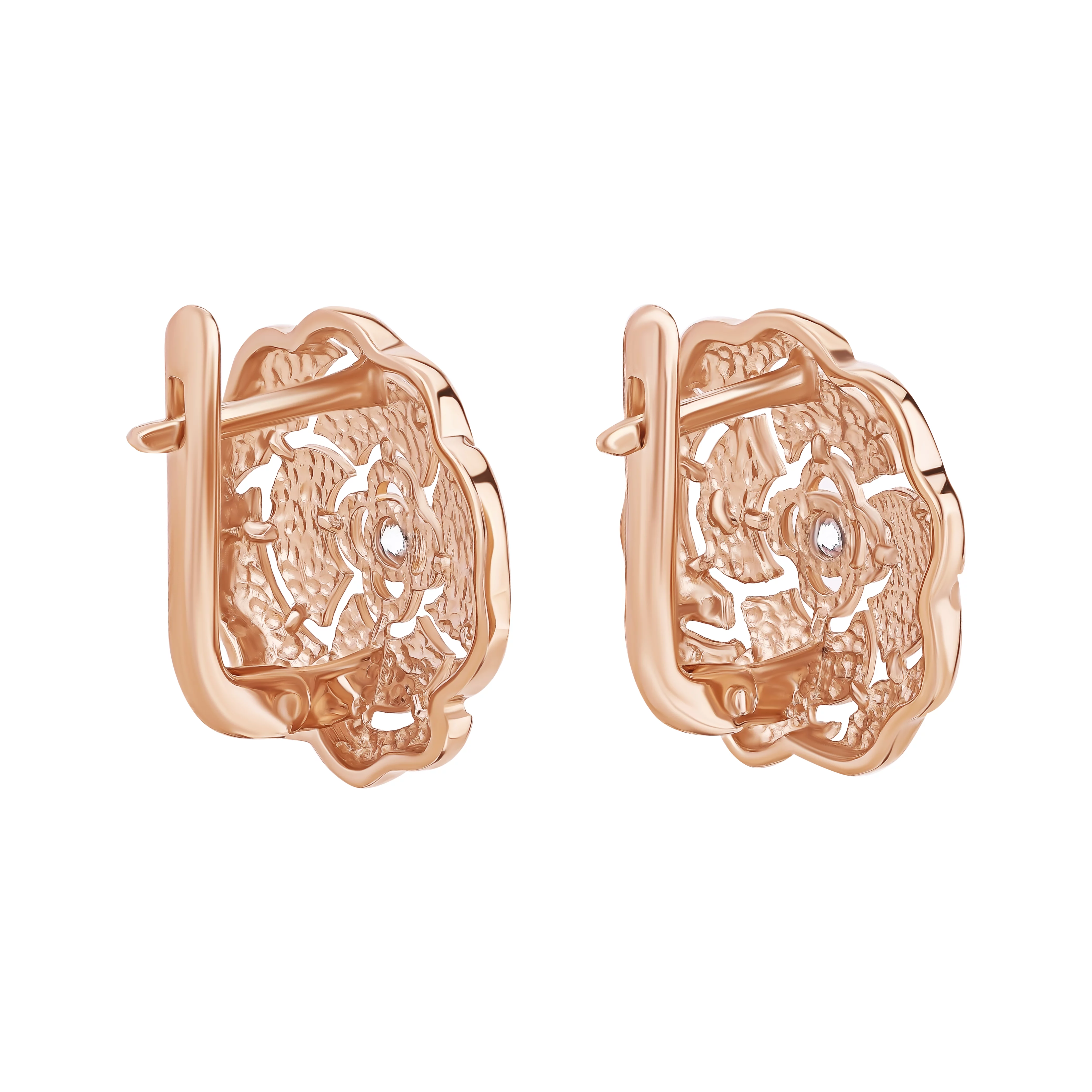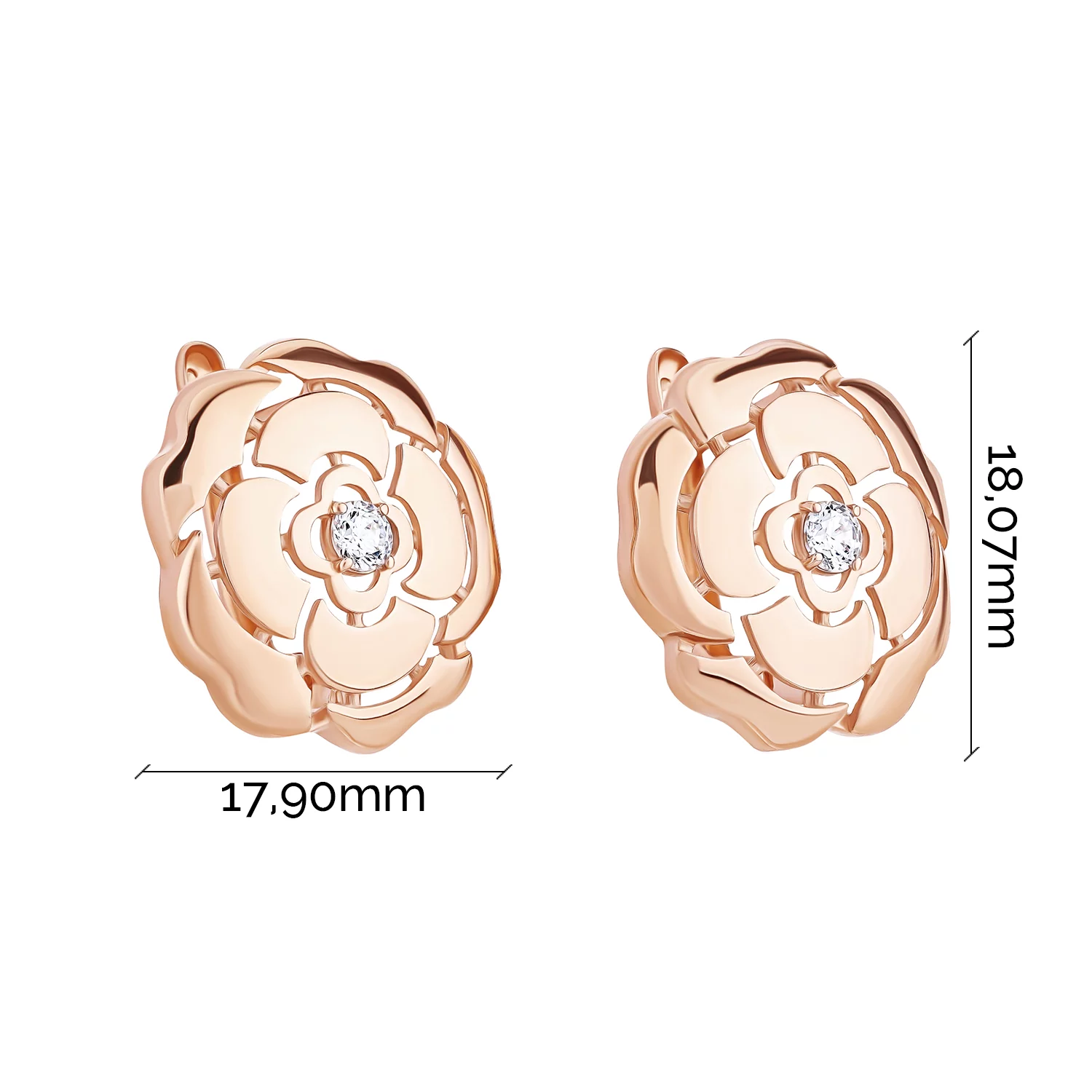 Сережки-гвоздики в форме цветочка из красного золота с фианитом - 1723157