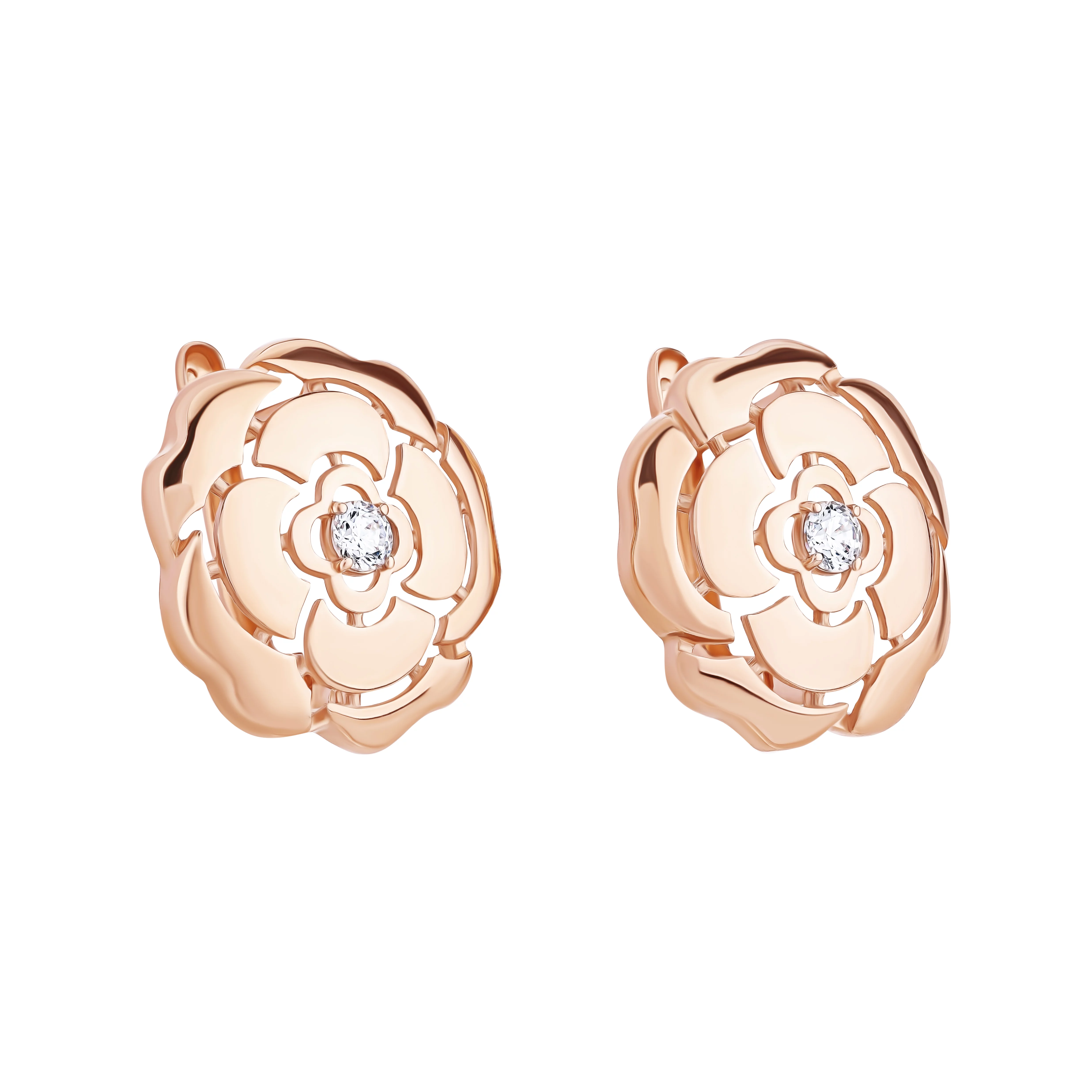 Детские сережки в форме цветка из красного золота с фианитами - 1879079